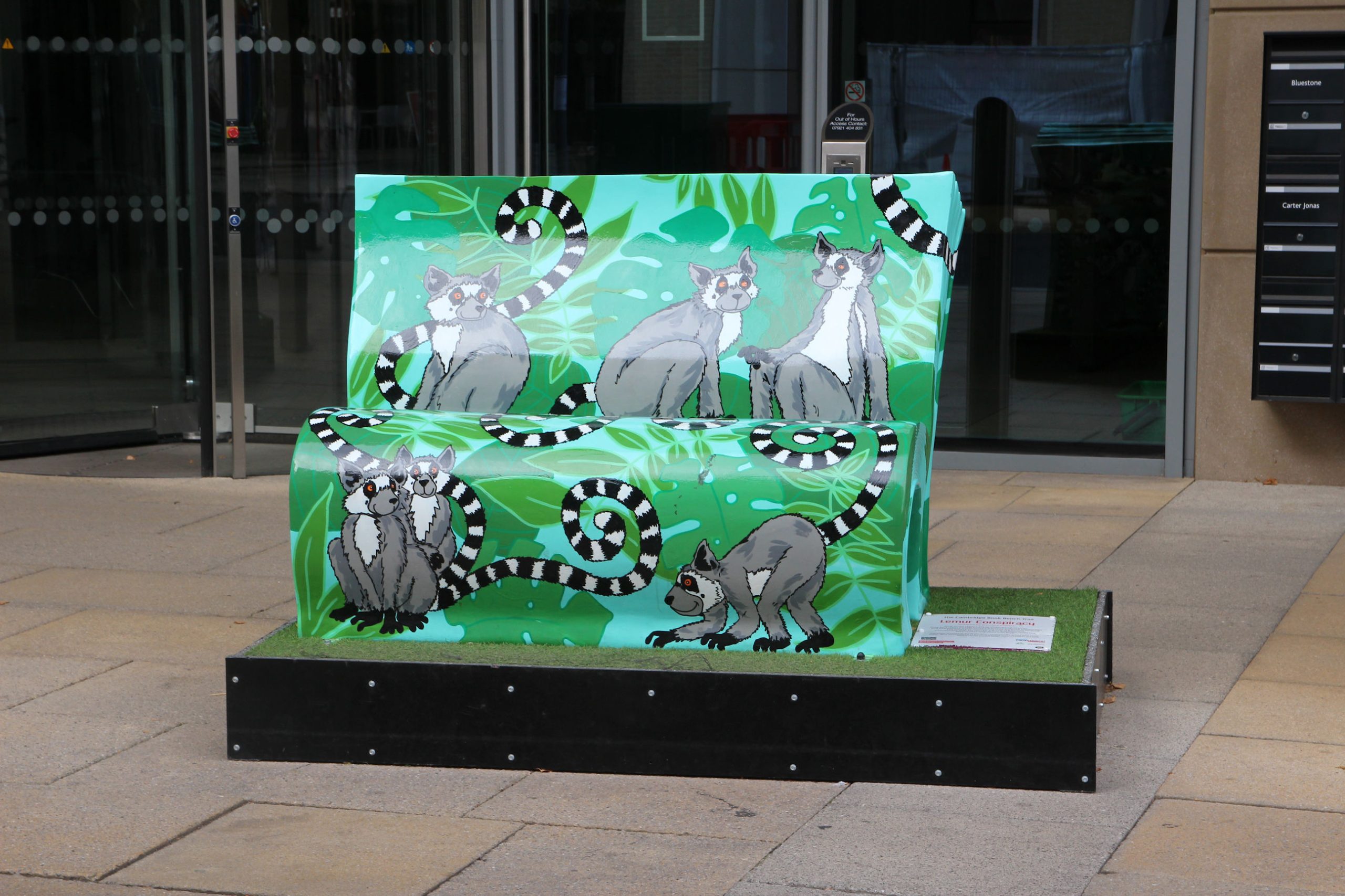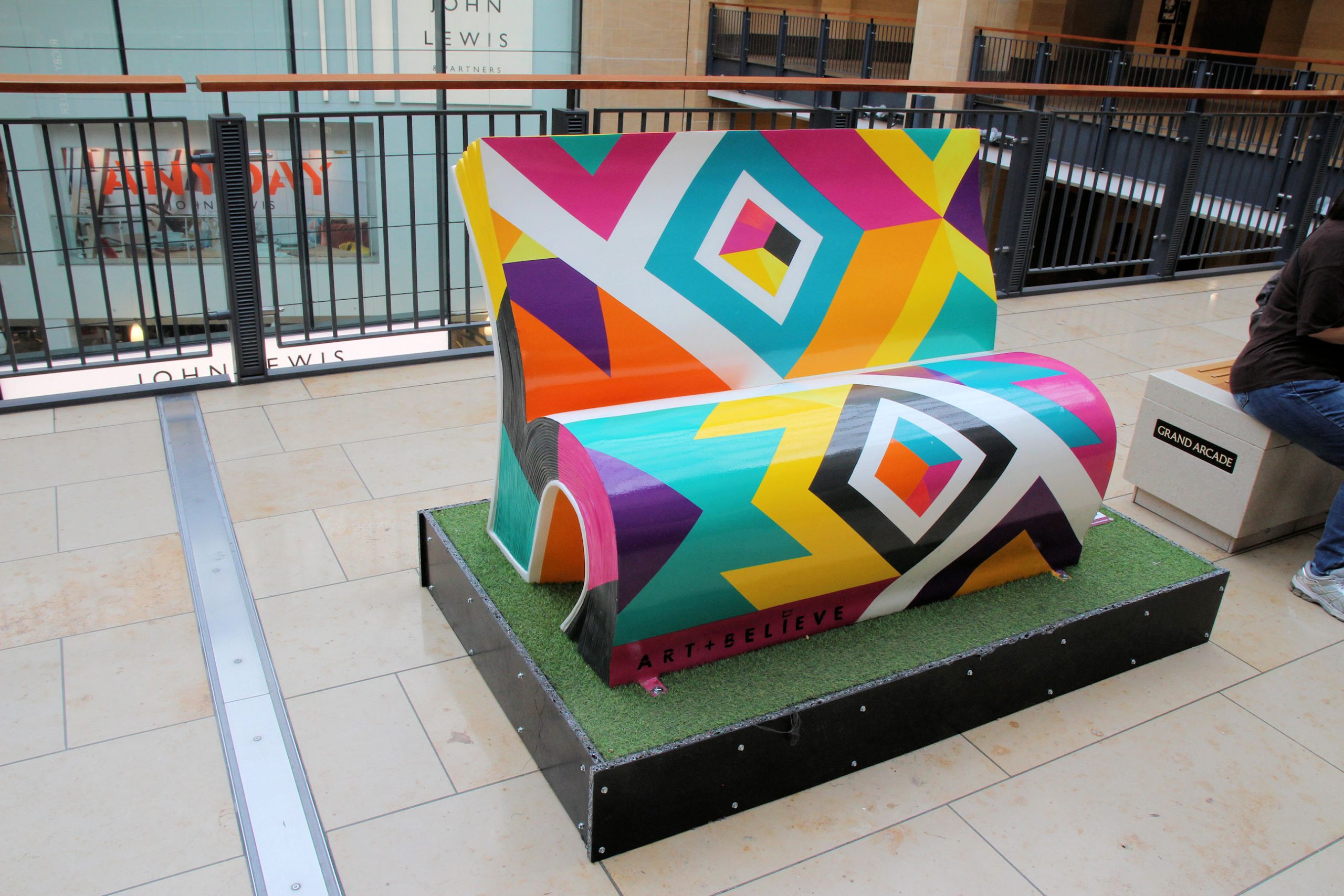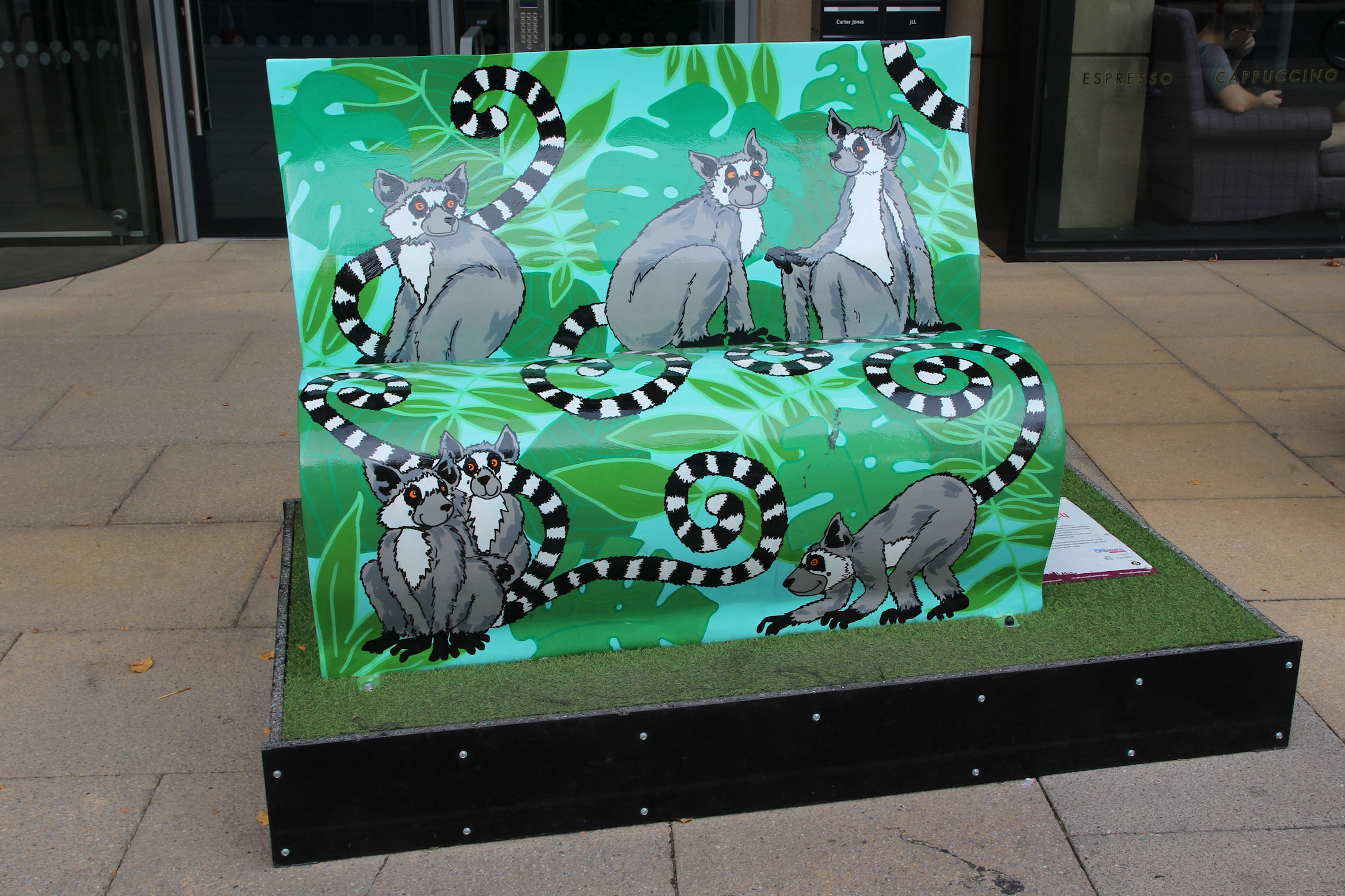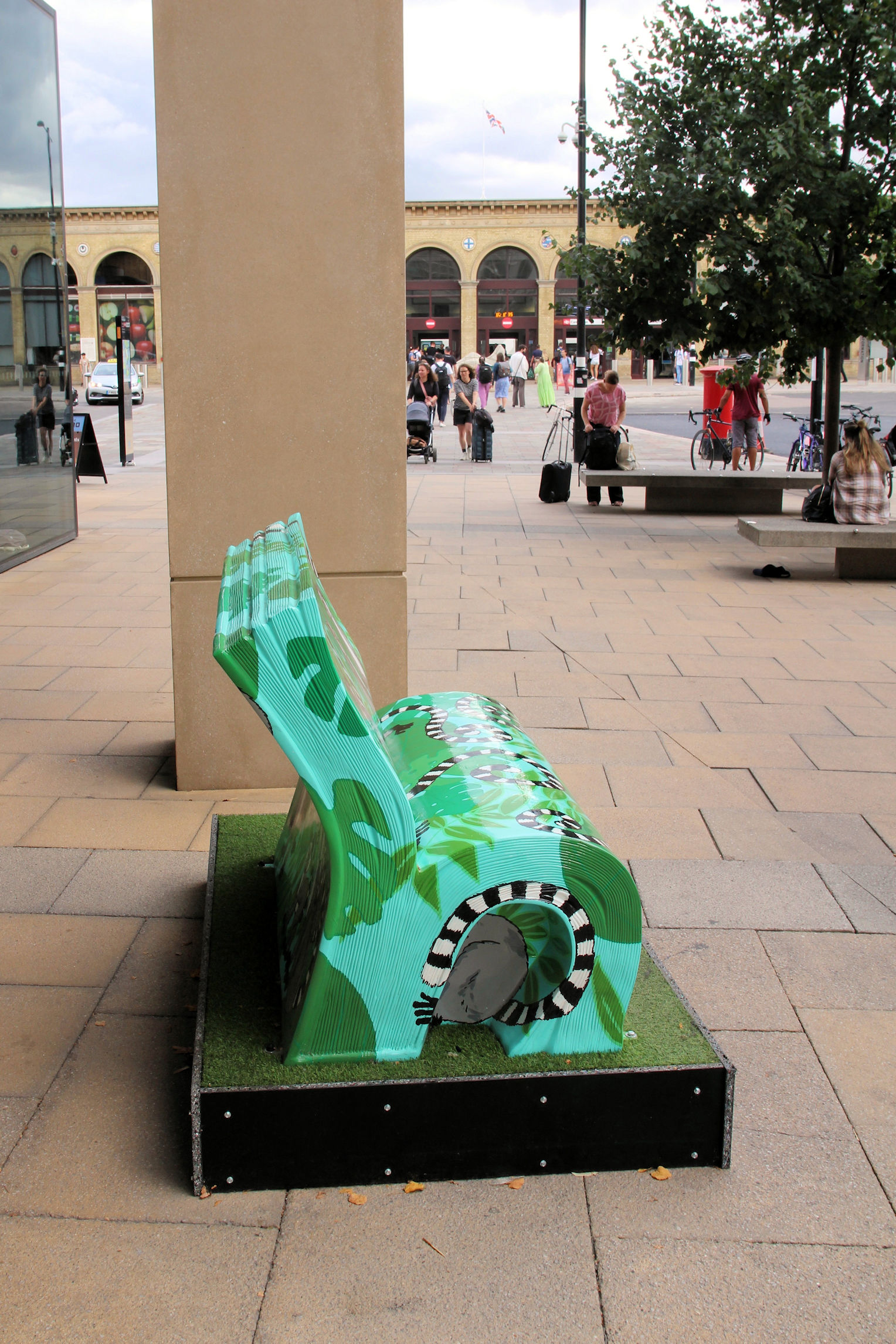 Eleven of the benches are at locations that were used on the Large Cows Trail; the twelfth is in the Grand Arcade. There is a trail map here that shows the benches and their locations. Unlike with the cows, no farewell event or charity auction has been announced; the benches may be moved between several locations.