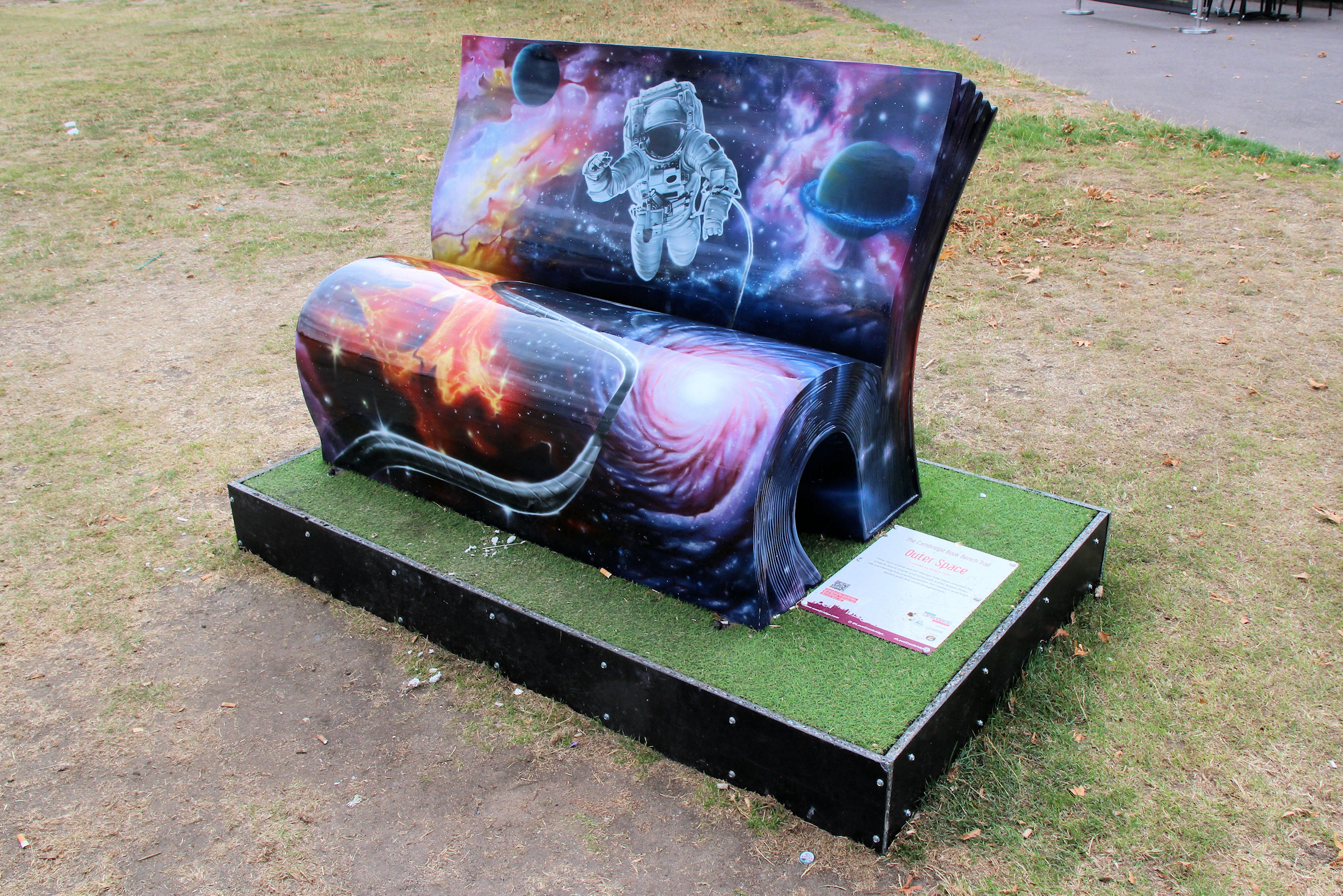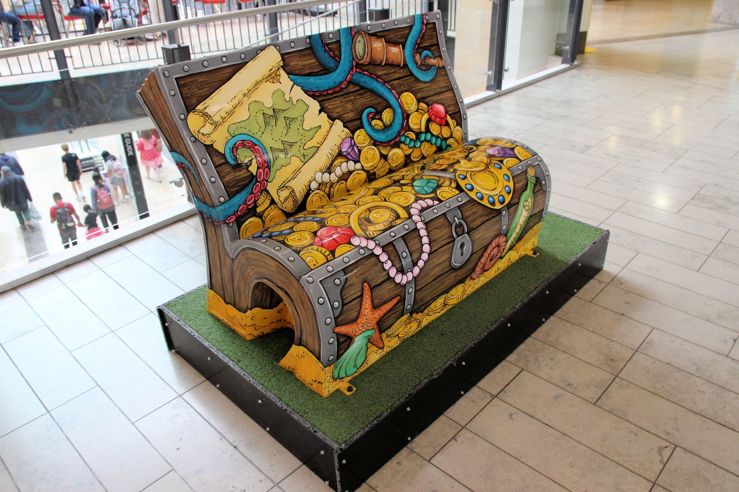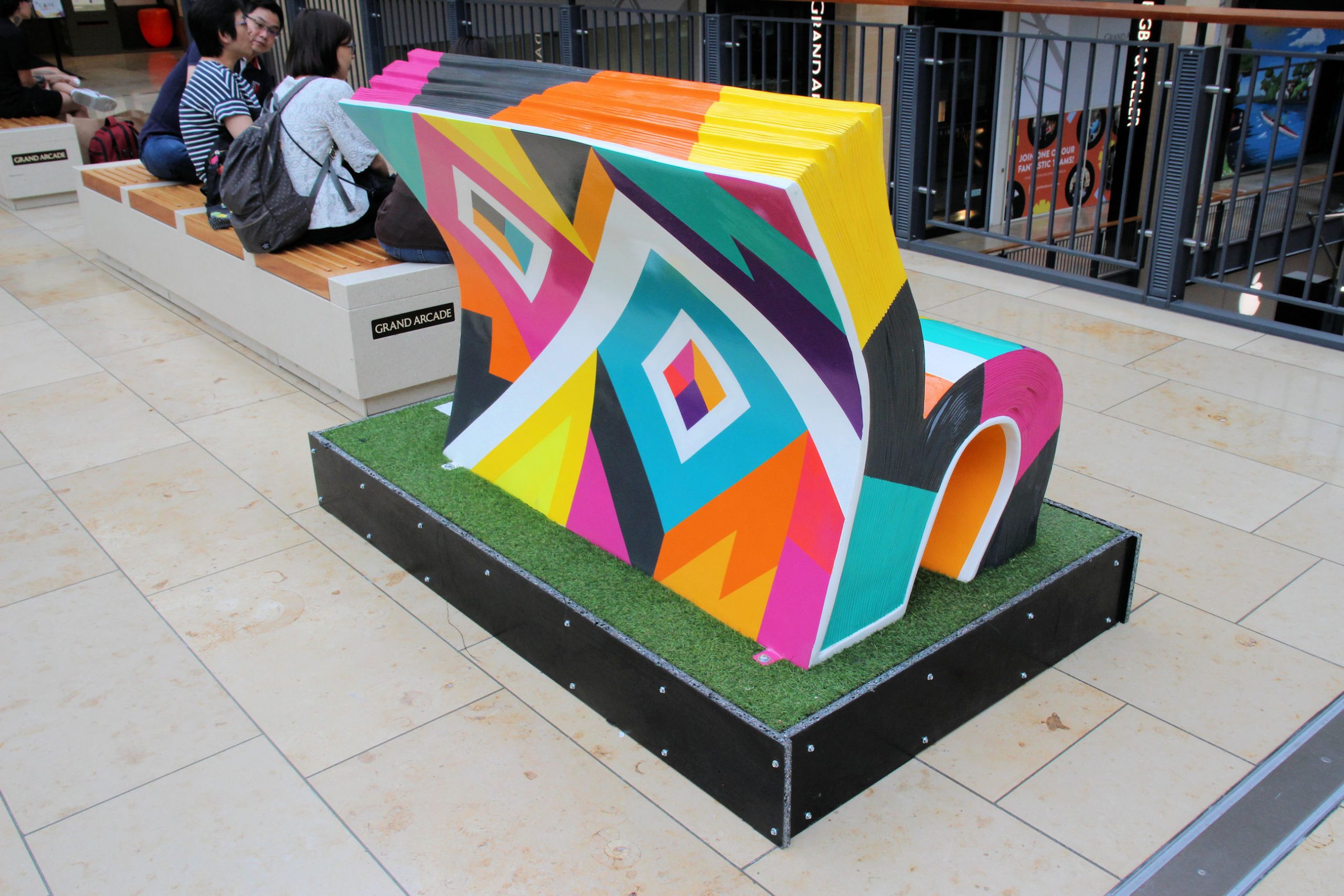 Eleven of the benches are at locations that were used on the Large Cows Trail; the twelfth is in the Grand Arcade. There is a trail map here that shows the benches and their locations. Unlike with the cows, no farewell event or charity auction has been announced; the benches may be moved between several locations.