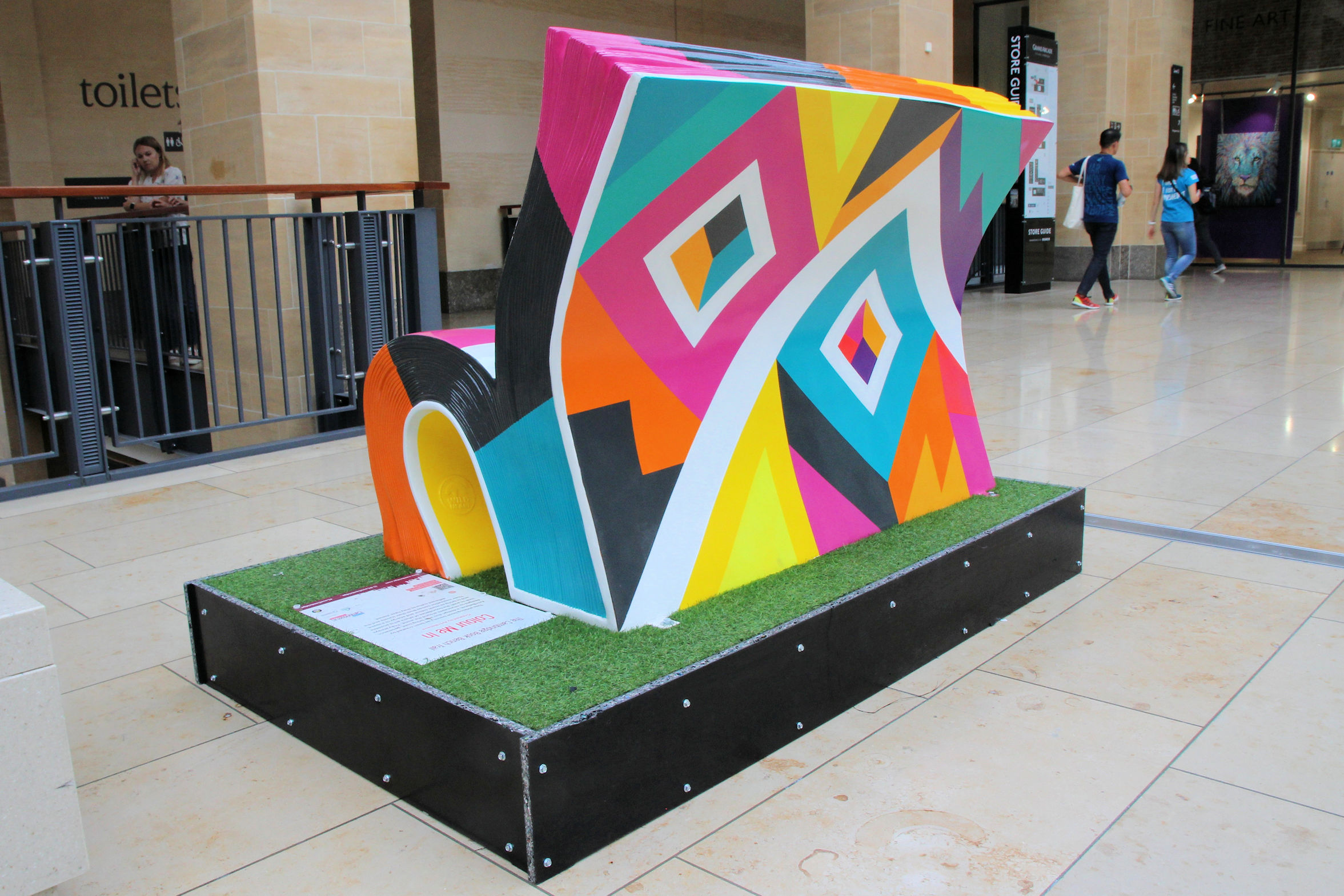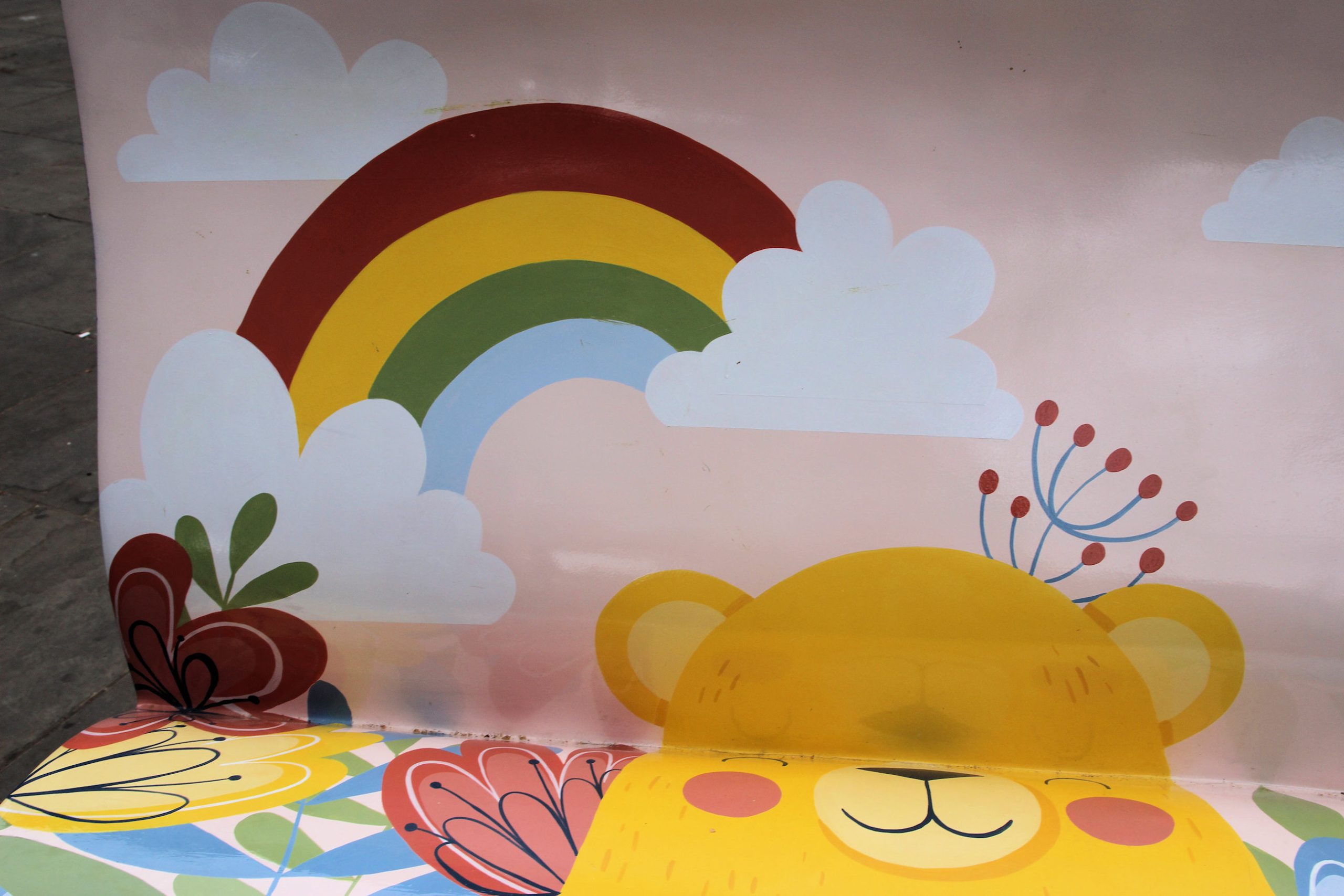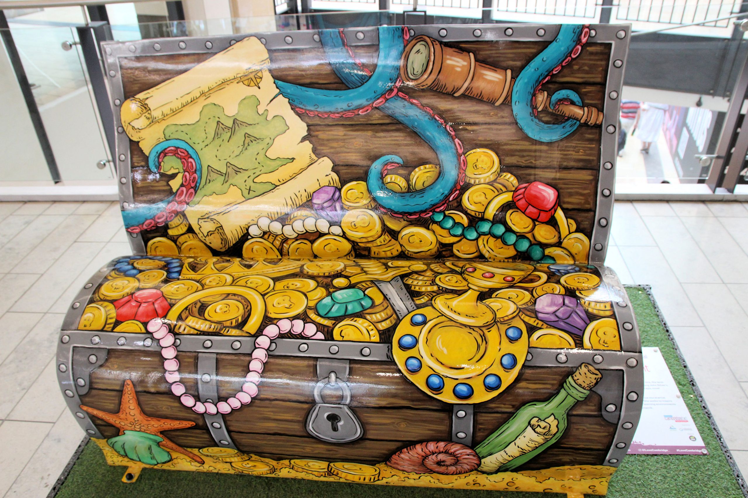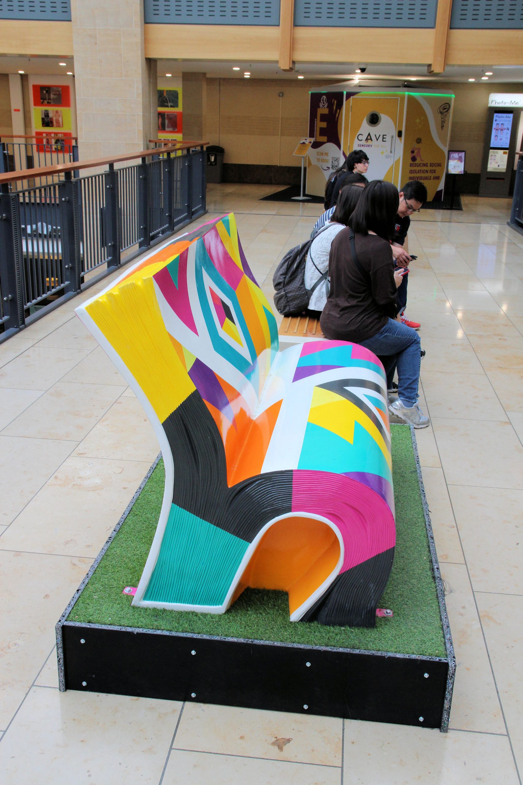 Eleven of the benches are at locations that were used on the Large Cows Trail; the twelfth is in the Grand Arcade. There is a trail map here that shows the benches and their locations. Unlike with the cows, no farewell event or charity auction has been announced; the benches may be moved between several locations.