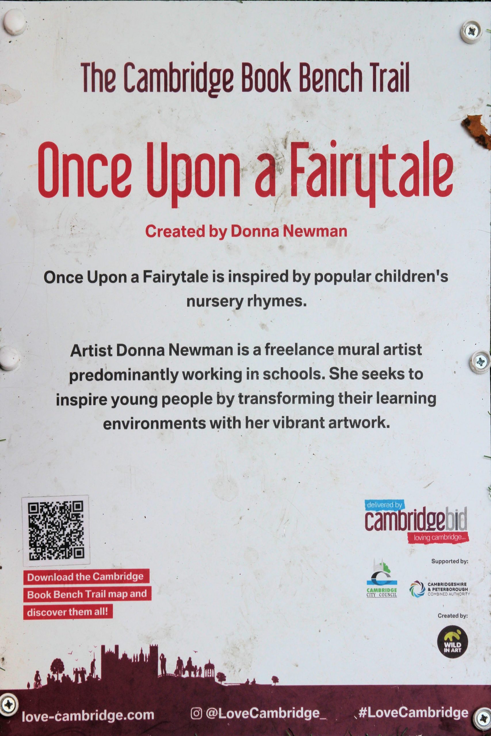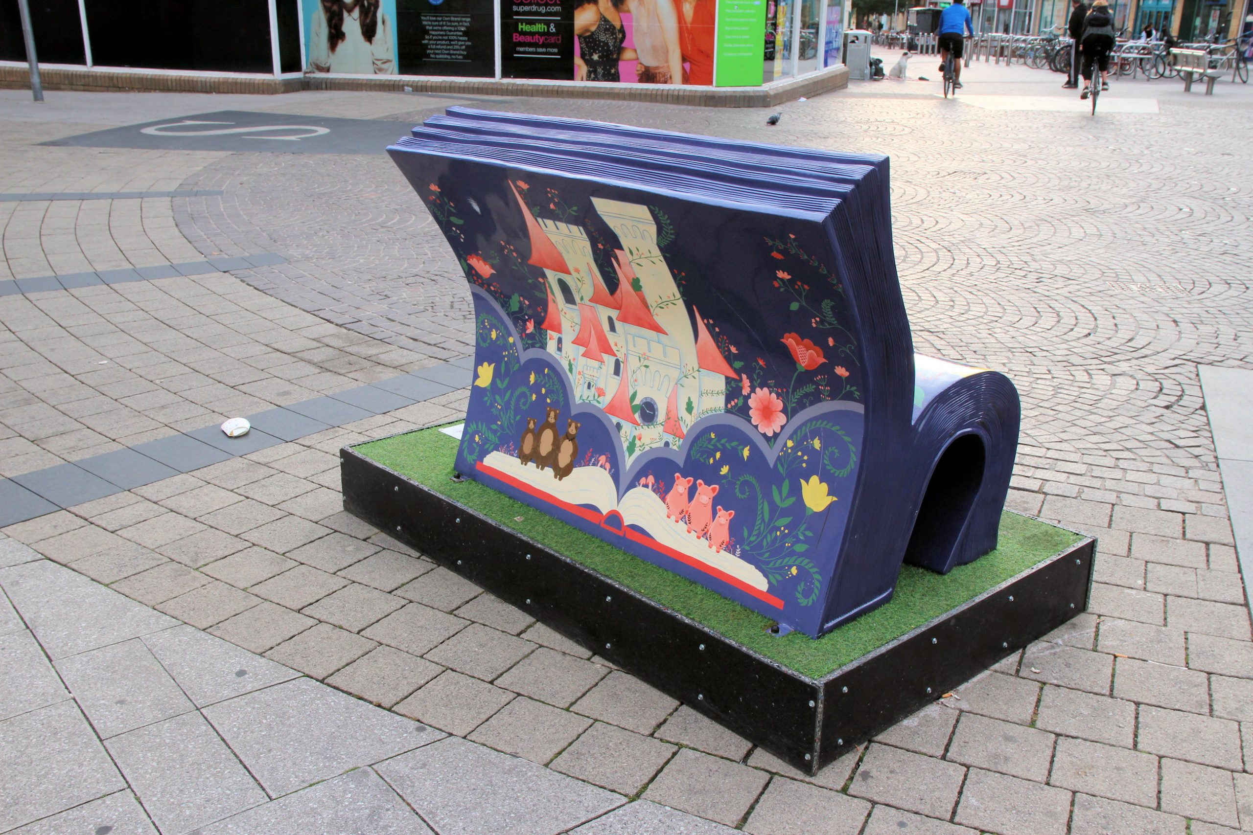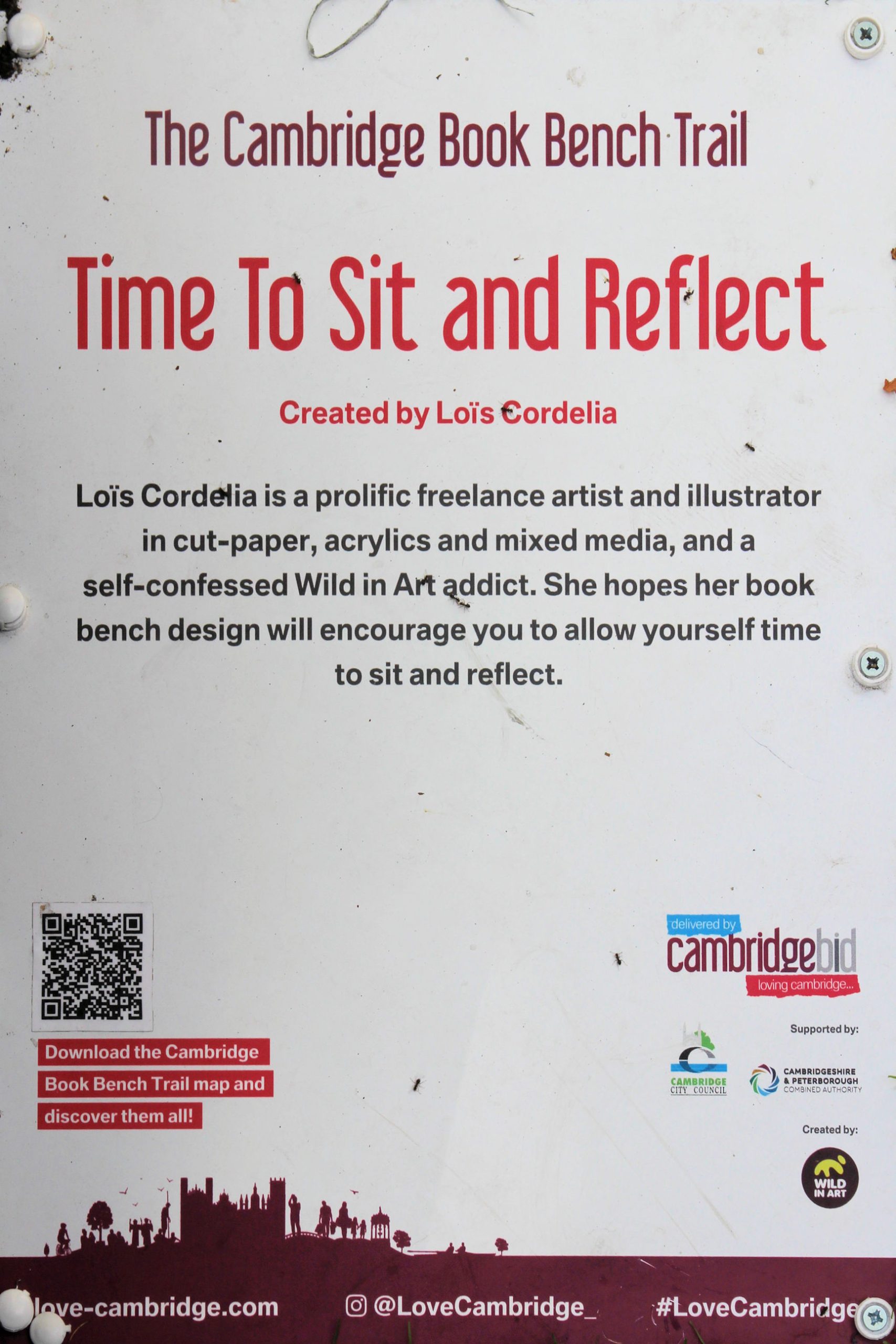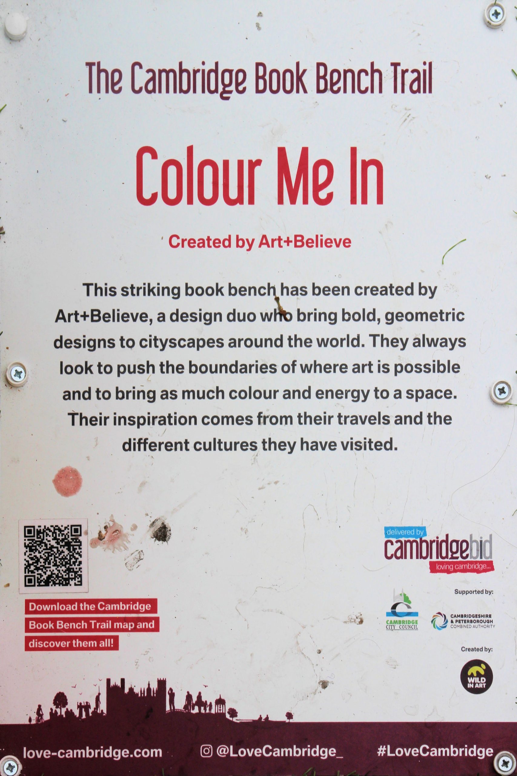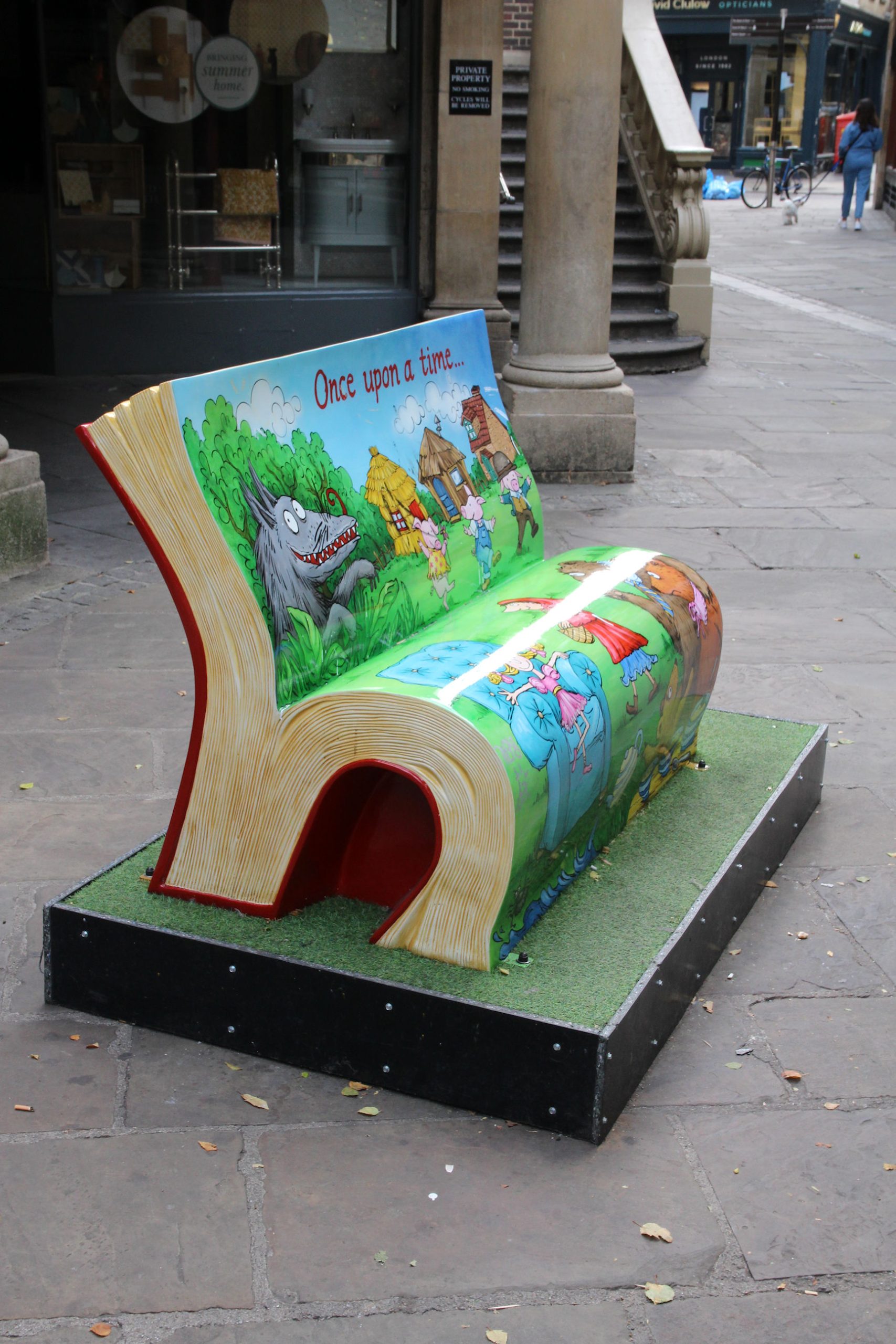 The Cambridge Book Bench Trail is a set of 12 benches decorated with designs by UK artists, which were placed around Cambridge between 8th July and 16th September 2022. The trail is a partnership between Wild In Art, who produced the Cows About Cambridge trails in 2021, and Cambridge BID.