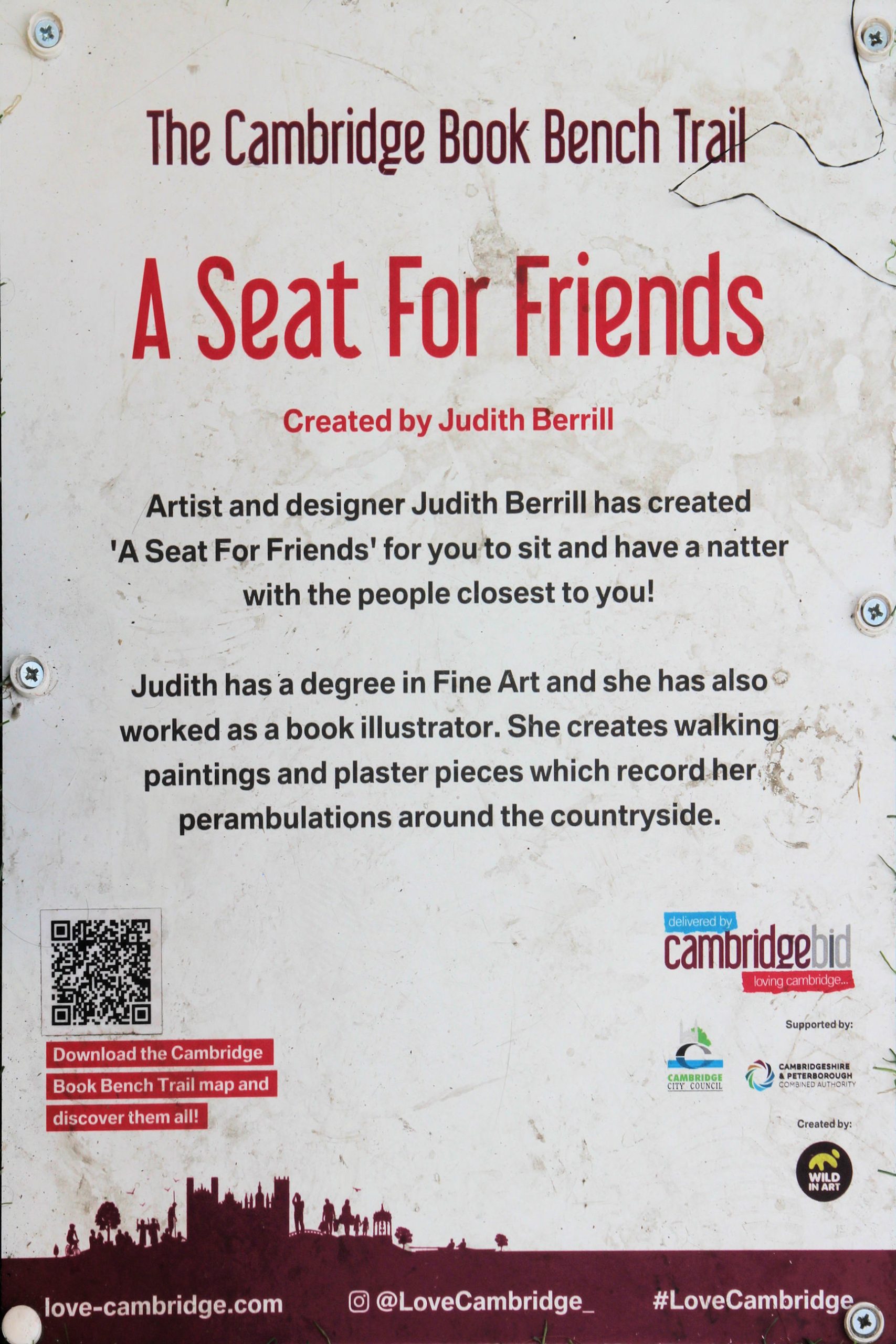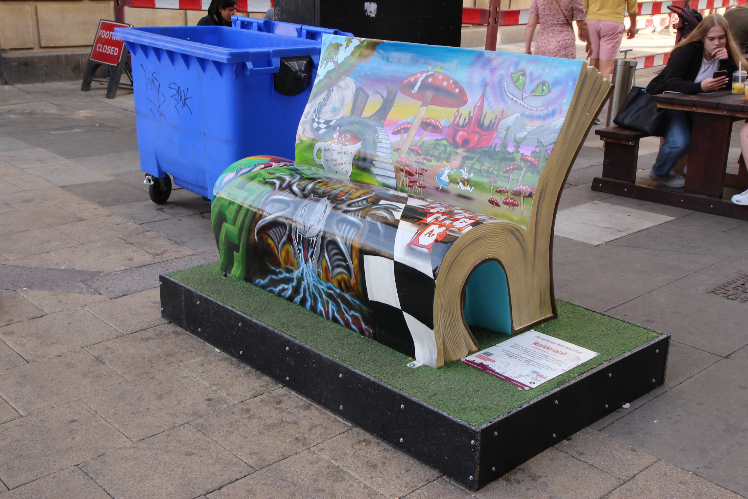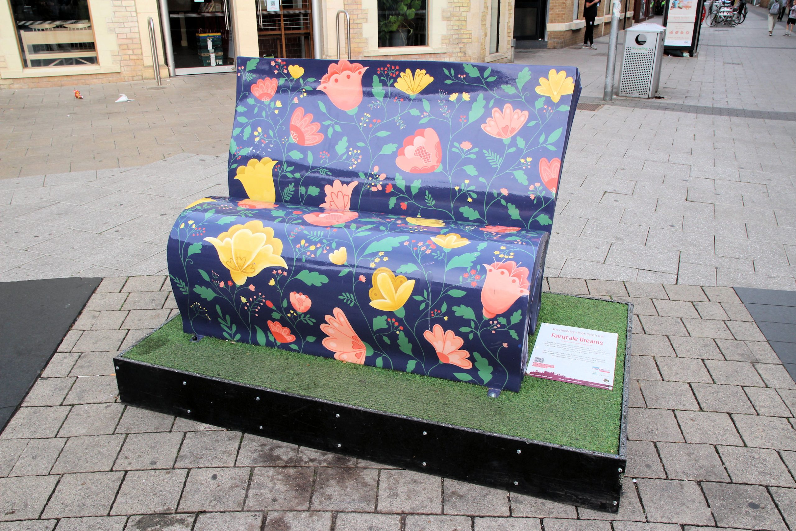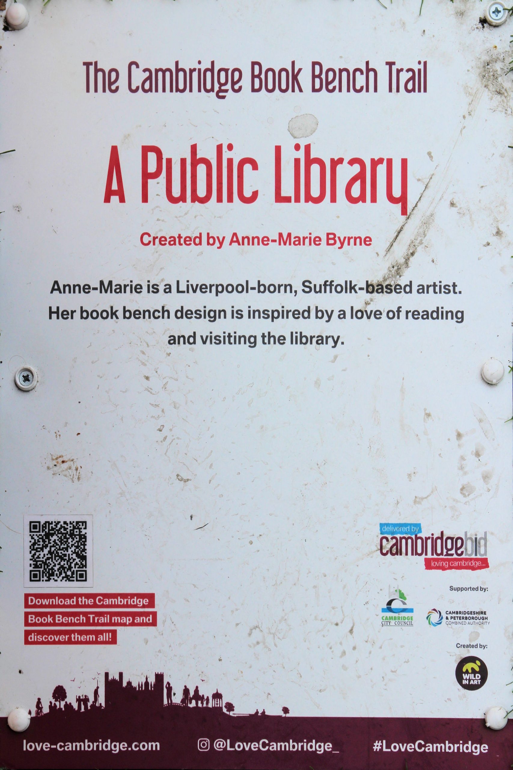 The Cambridge Book Bench Trail is a set of 12 benches decorated with designs by UK artists, which were placed around Cambridge between 8th July and 16th September 2022. The trail is a partnership between Wild In Art, who produced the Cows About Cambridge trails in 2021, and Cambridge BID.