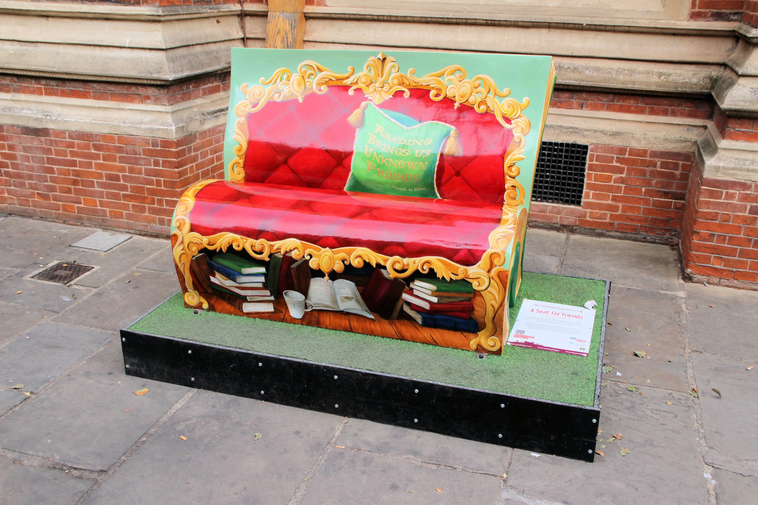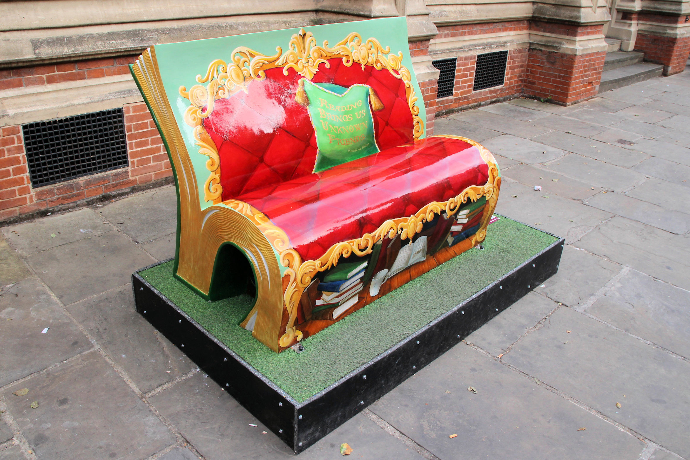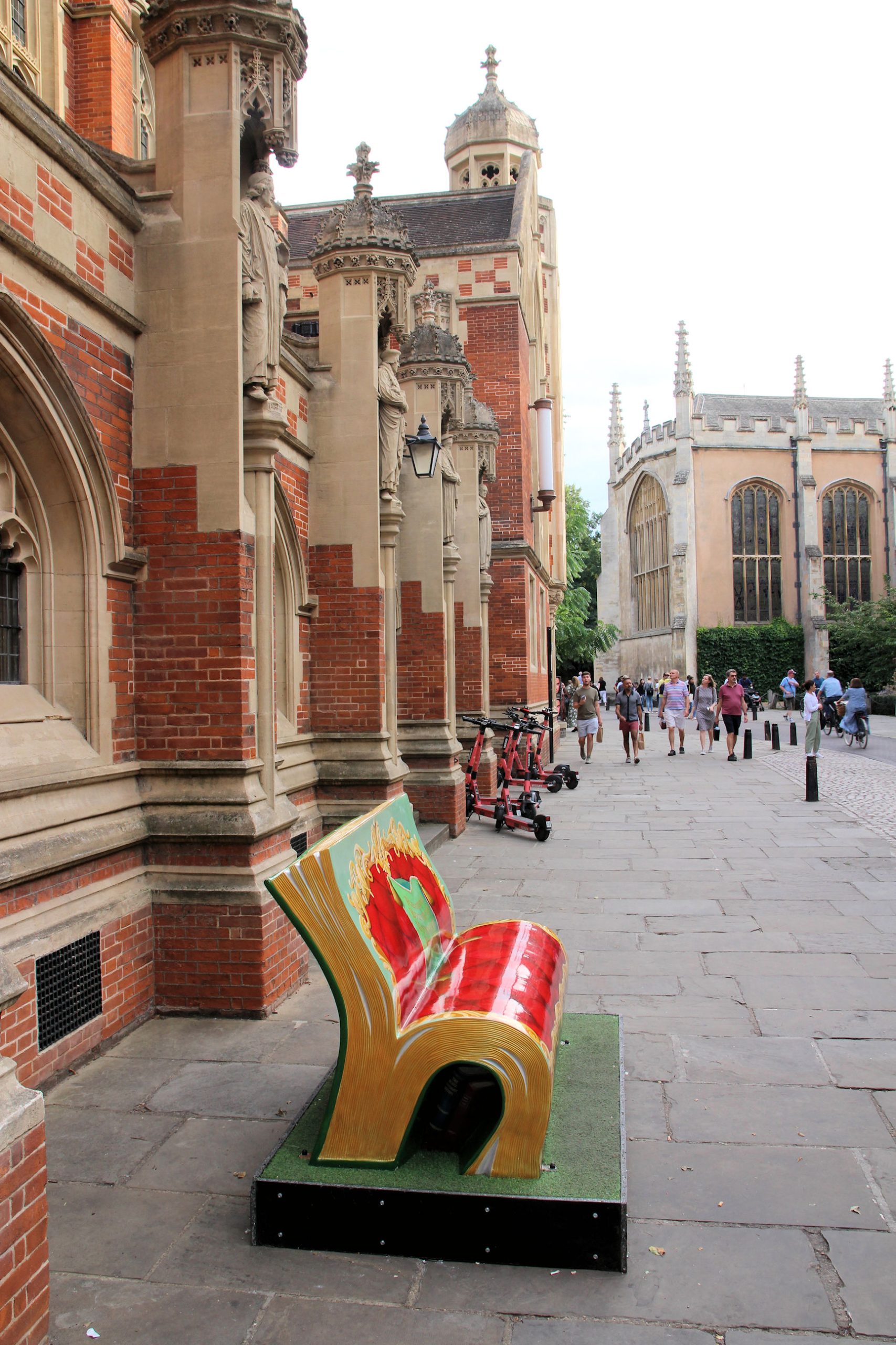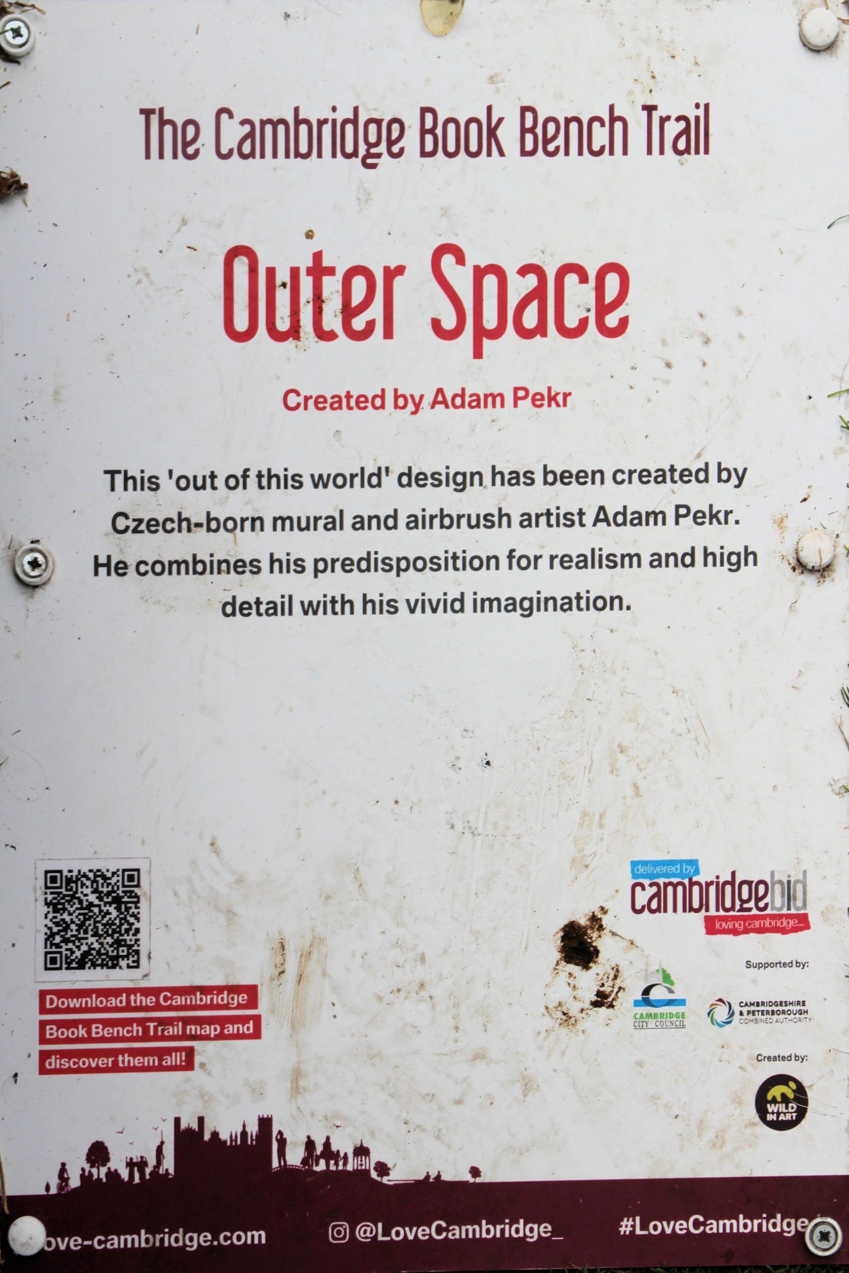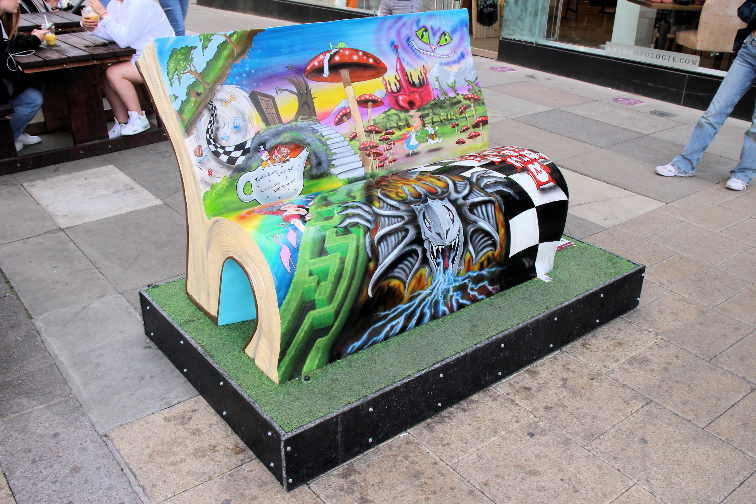 The Cambridge Book Bench Trail is a set of 12 benches decorated with designs by UK artists, which were placed around Cambridge between 8th July and 16th September 2022. The trail is a partnership between Wild In Art, who produced the Cows About Cambridge trails in 2021, and Cambridge BID.