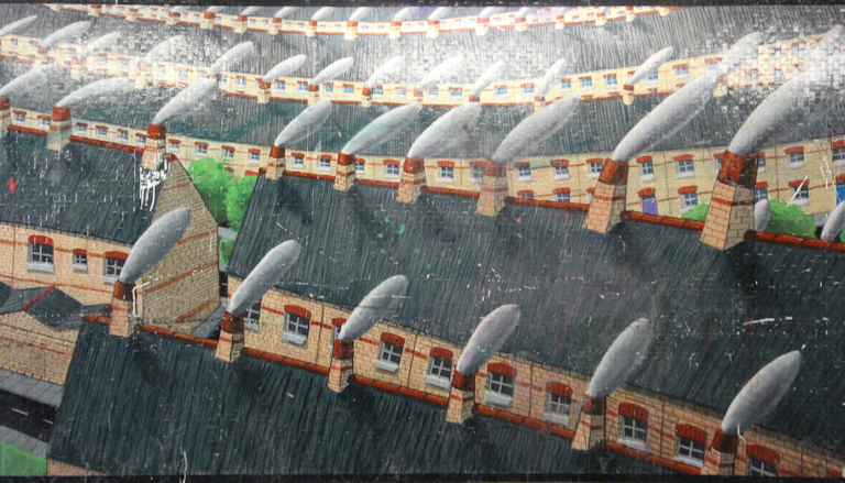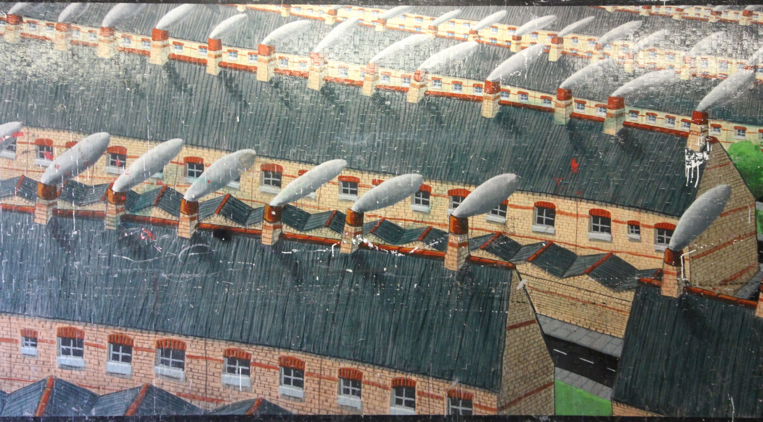 This consists entirely of Victorian terraced houses, all with smoking chimneys. No TV aerials, and roads free of cars and wheelie bins.