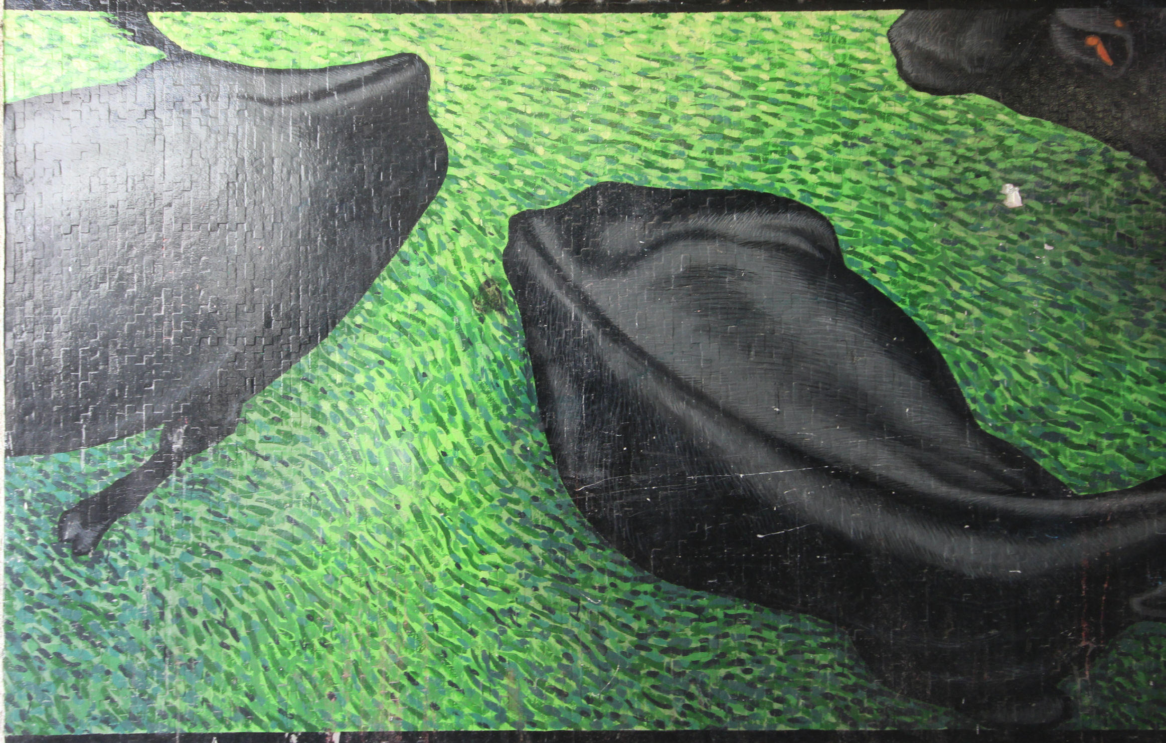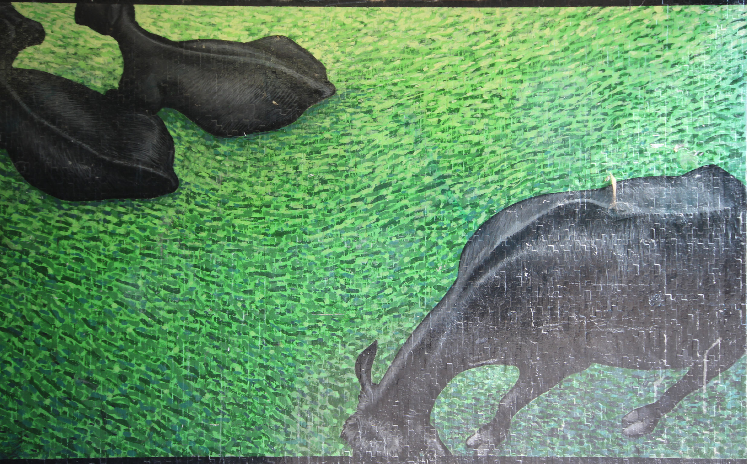 - Northwest corner, towards Midsummer Common – cows grazing on the common, and punting on the River Cam.