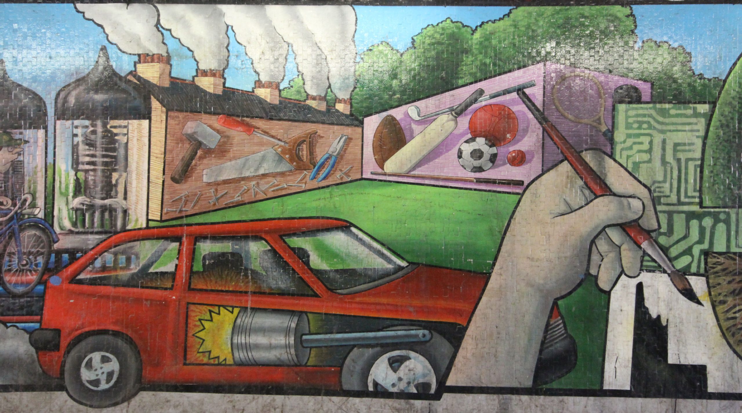 This mural isn’t labelled but is a continuation of the Stourbridge Fair theme.
