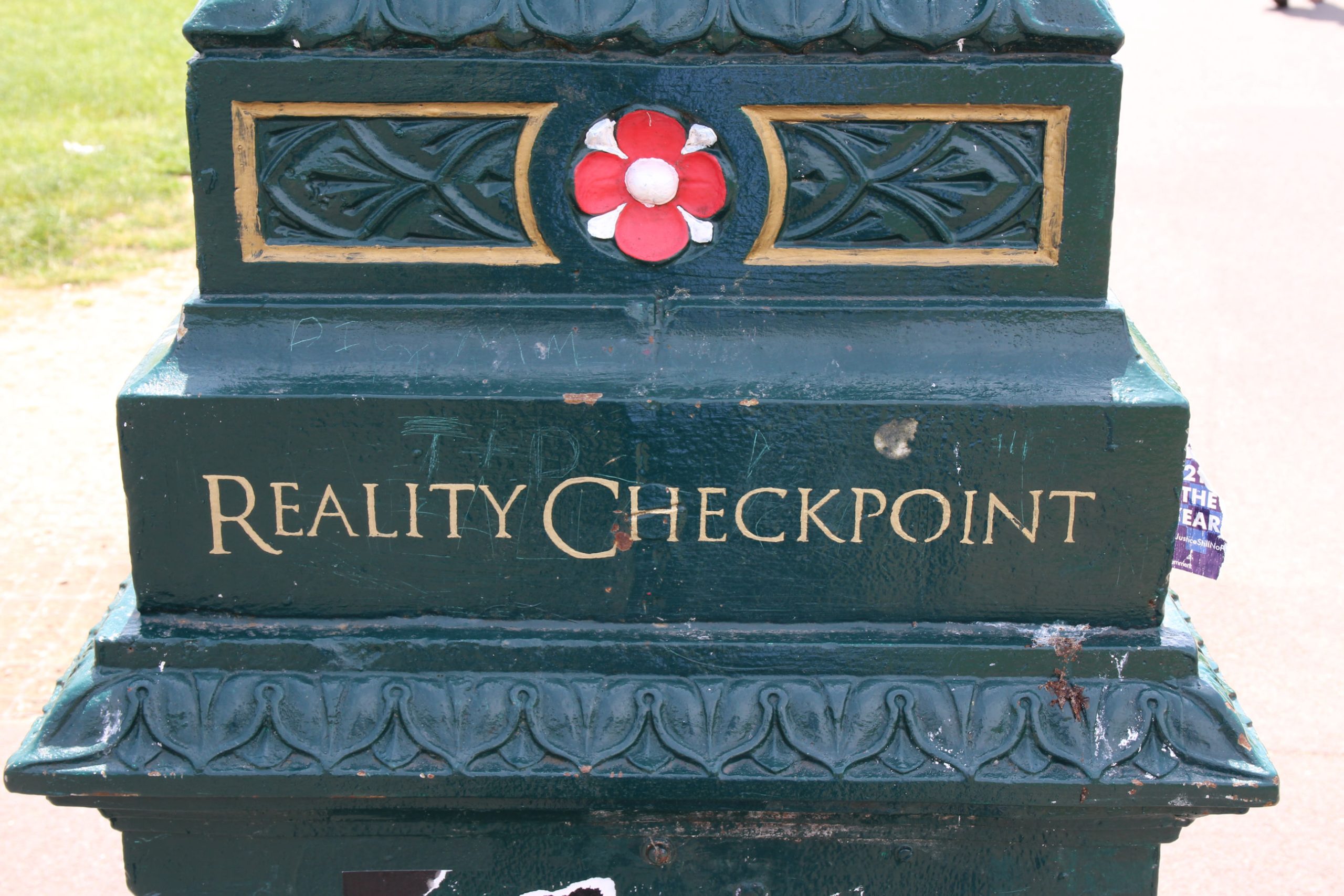 One side of the pillar has now been labelled as such. This got the thumbs down – the name “Reality Checkpoint” is meant to be part of the unwritten “knowledge” that gets handed on from one cohort of students to the next.