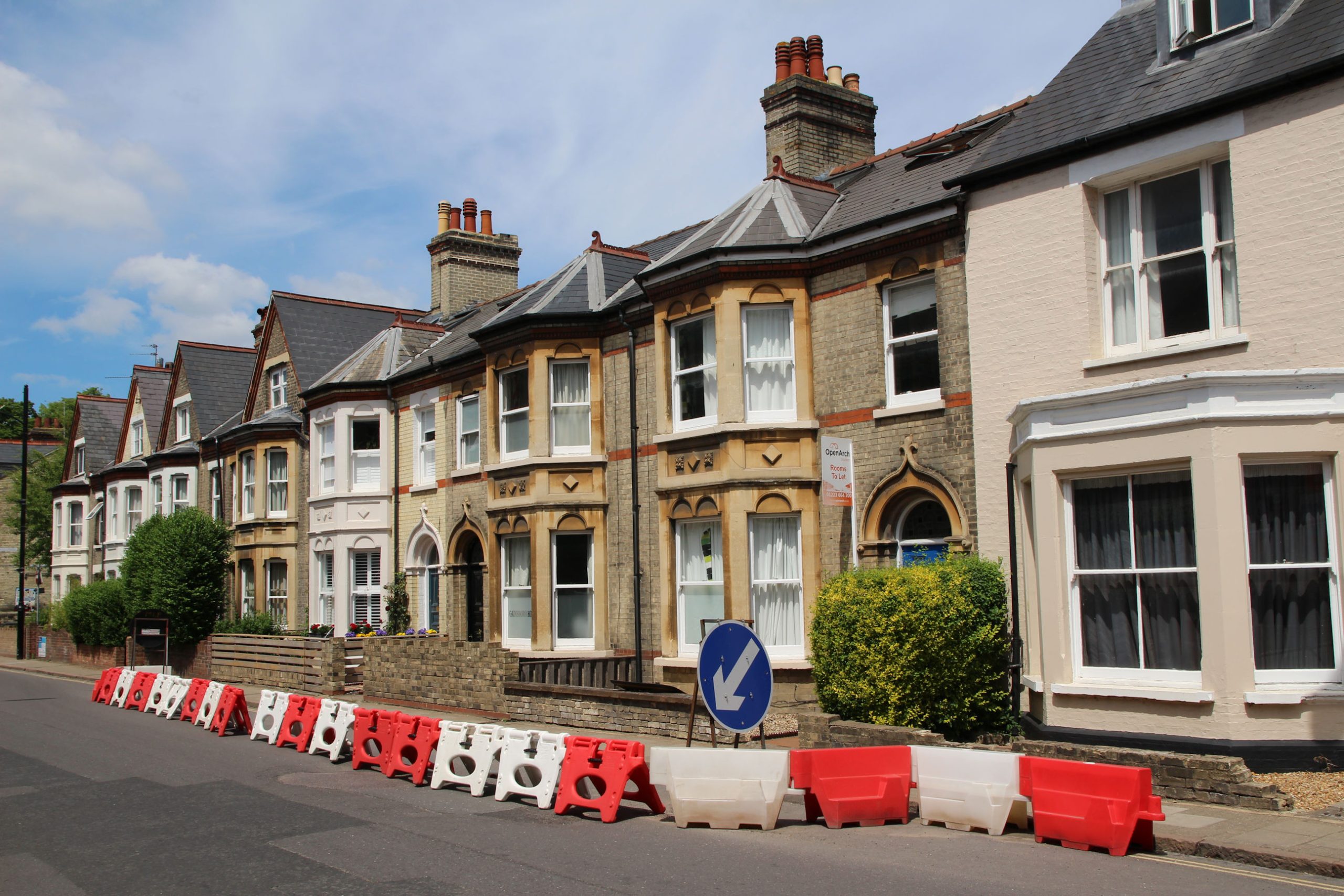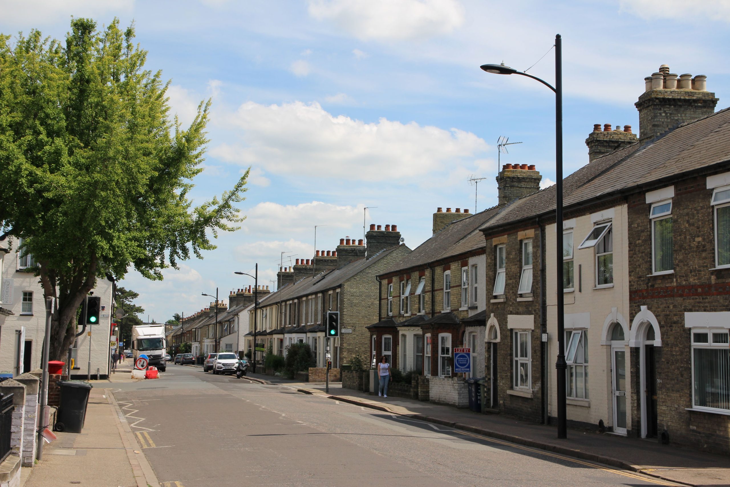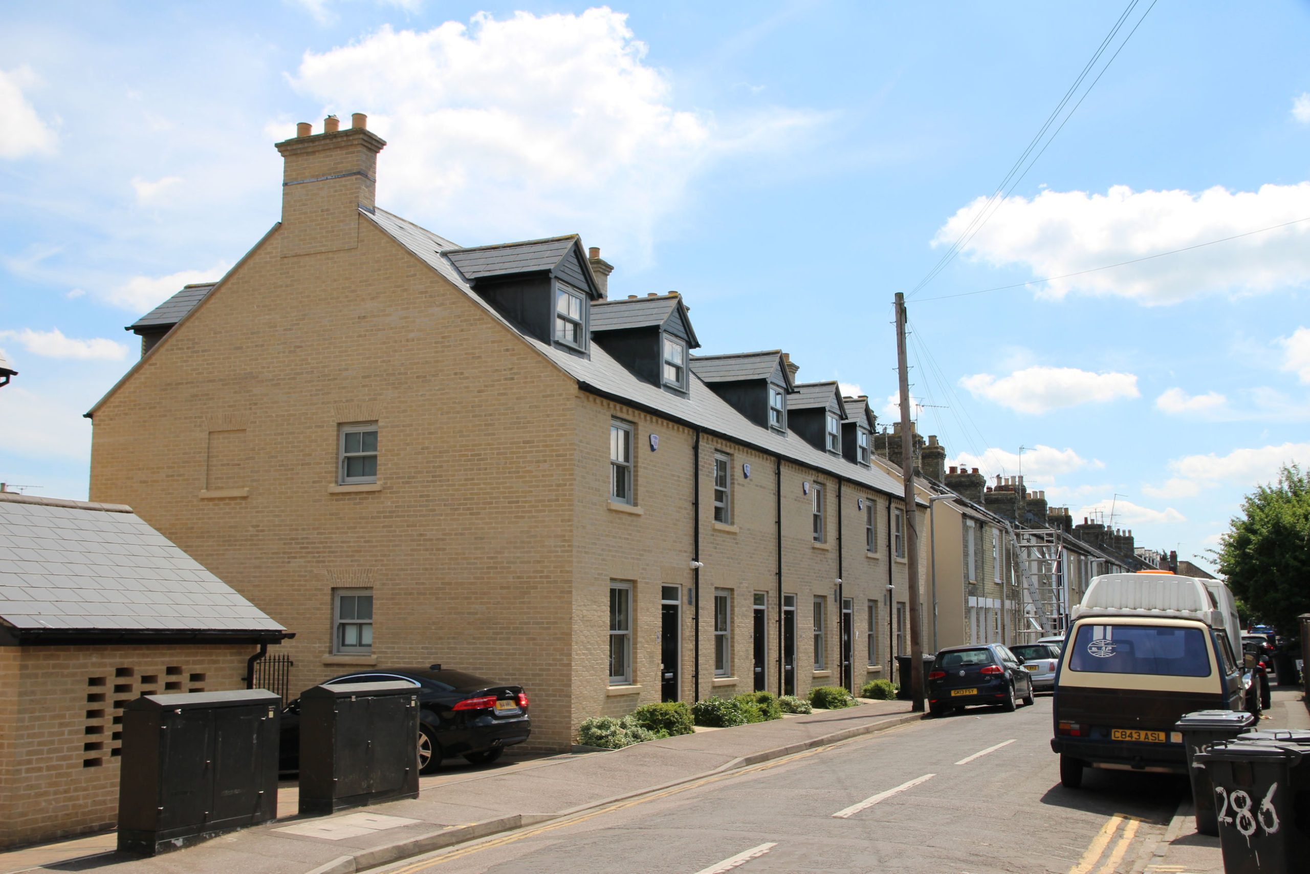 A look down Malta Road from Mill Road. These new Victorian-style houses feature a bricked-up window!
