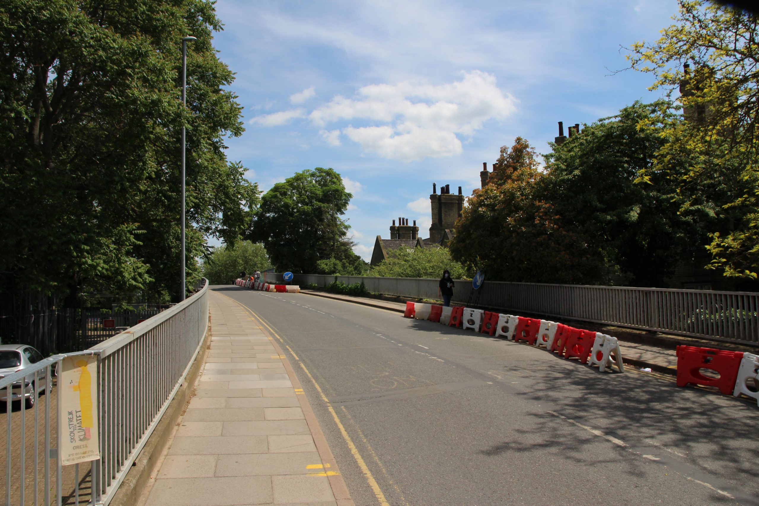 The ugly plastic barriers on the north side seem to be serving no purpose other than to restrict the road width. At the time of writing (June 2021) Mill Road Bridge is controversially closed to traffic other than buses, cycles and pedestrians.