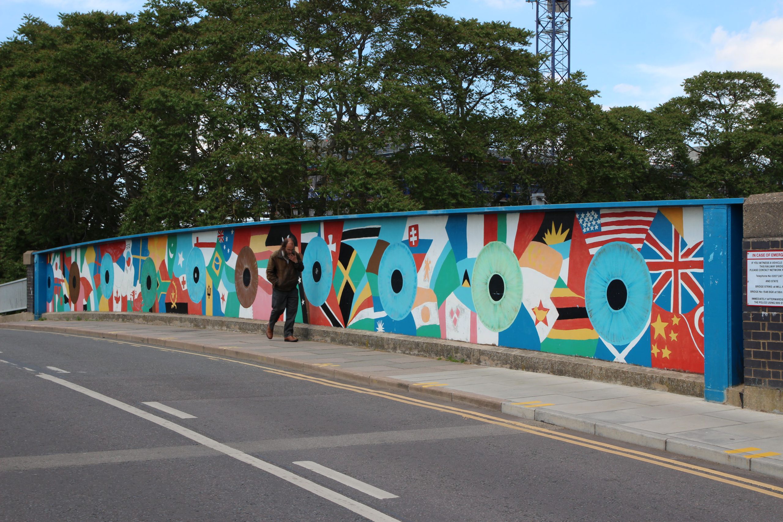 Both sides of the bridge are decorated with colourful murals. This is the north side.