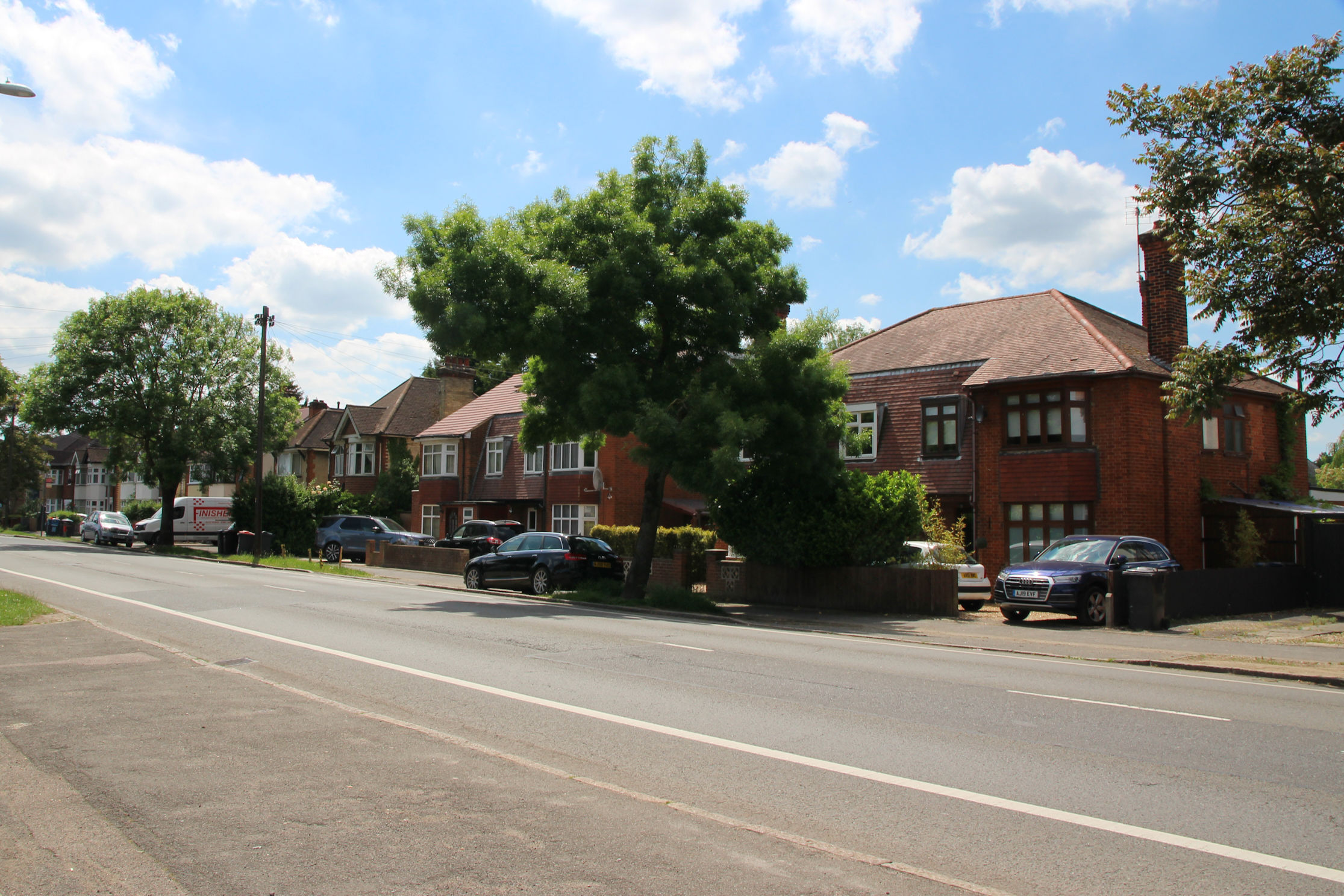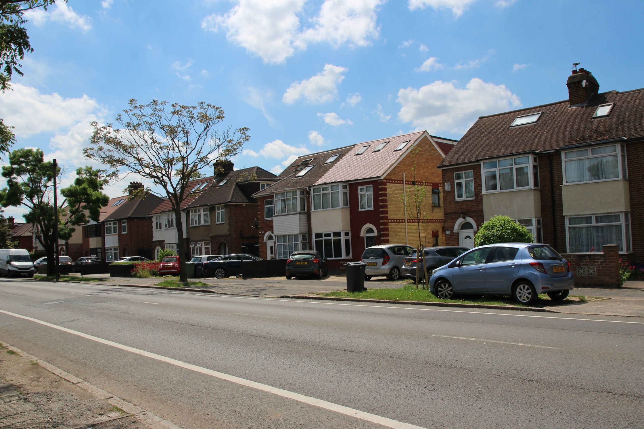 The part of Brookfields leading west from Perne Road features an eclectic mix of houses – from left to right: 1930s, 21st Century, c.1970s, Victorian.