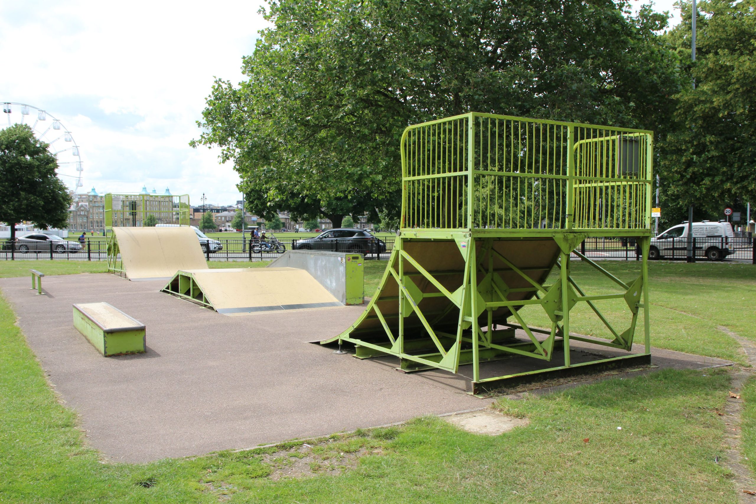 The small green in front of Parkside Pool is called Donkey Common, and contains a skateboard park.