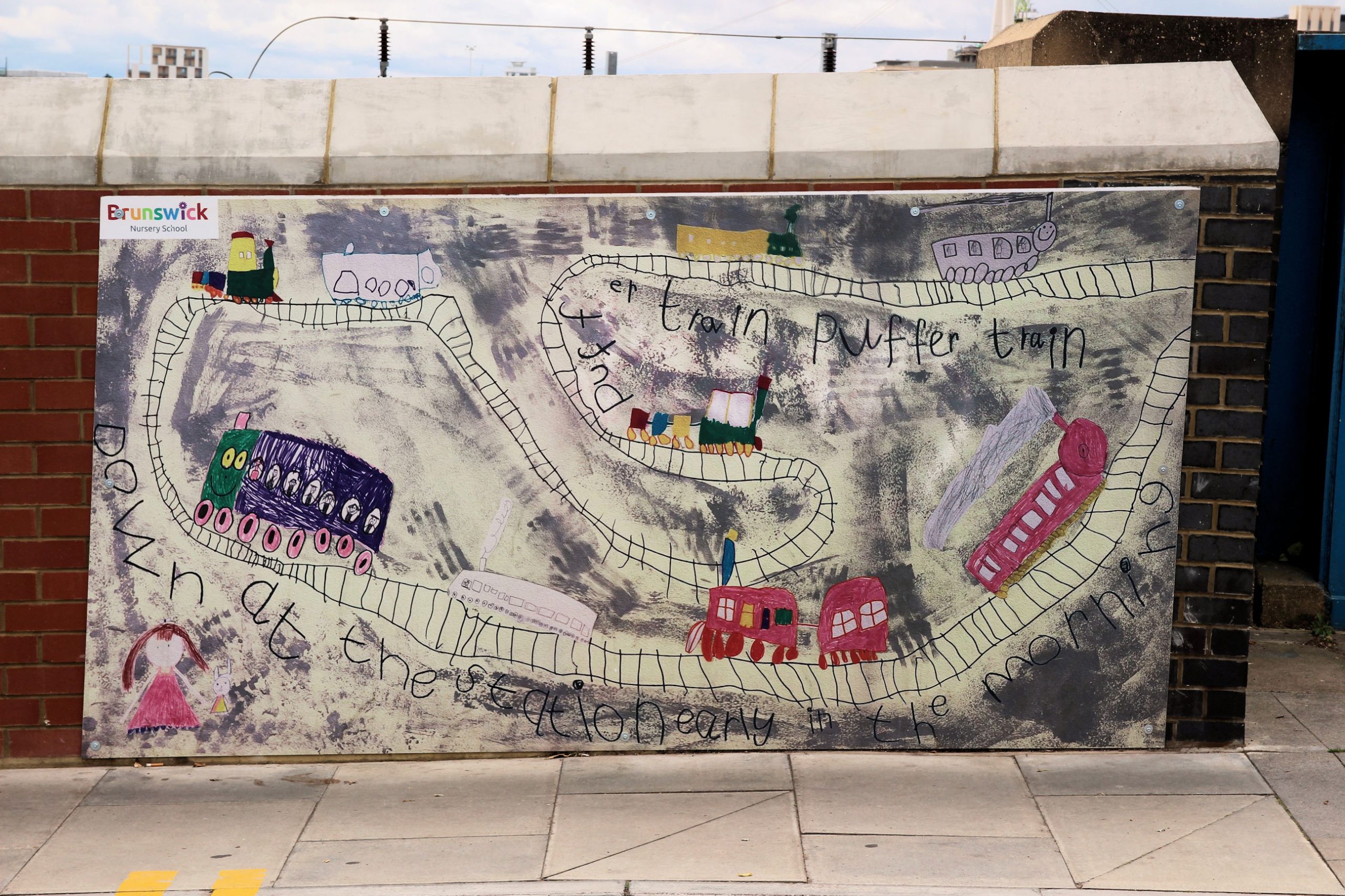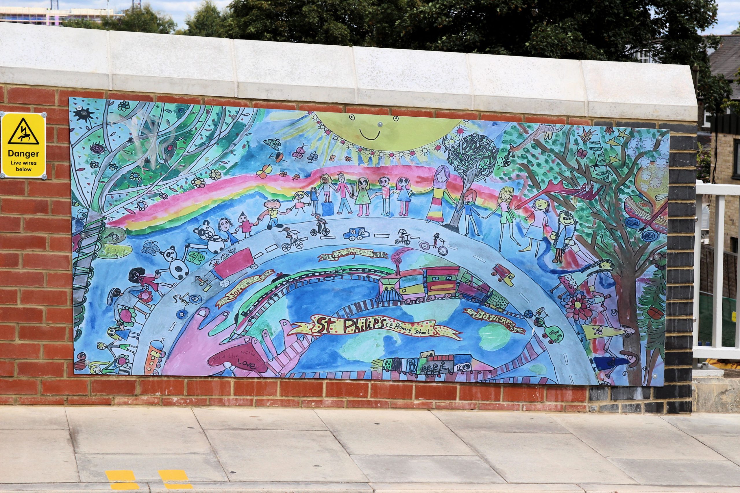 Three children’s artworks by two local primary schools and a nursery, unveiled at the 2019 Mill Road Winter Fair.
