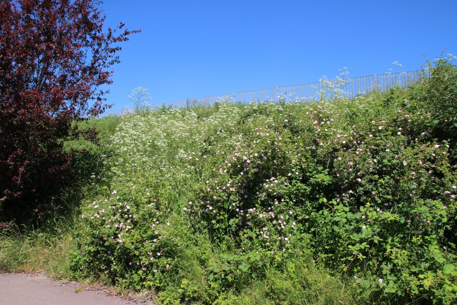 Looking to the right a bit further on from the previous photo, this part has been mown down a bit. People have objected to clearing of vegetation on these areas, but they need to bear in mind they’re landfills not pristine wildflower meadows. The site owner may need to keep them mown to monitor for contamination or landfill gas.