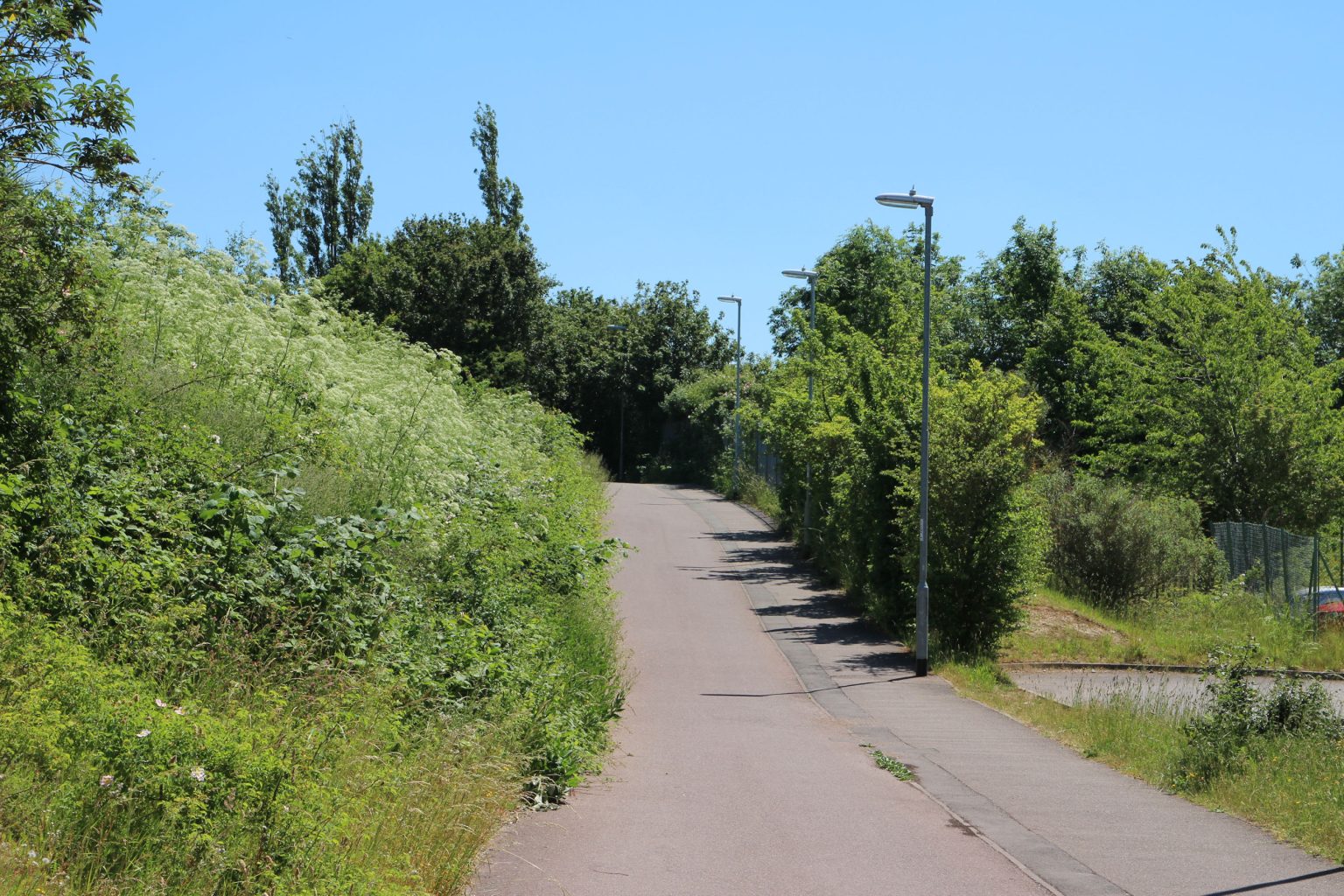 The path through the former Norman Works site continues eastwards alongside the David Lloyd club.