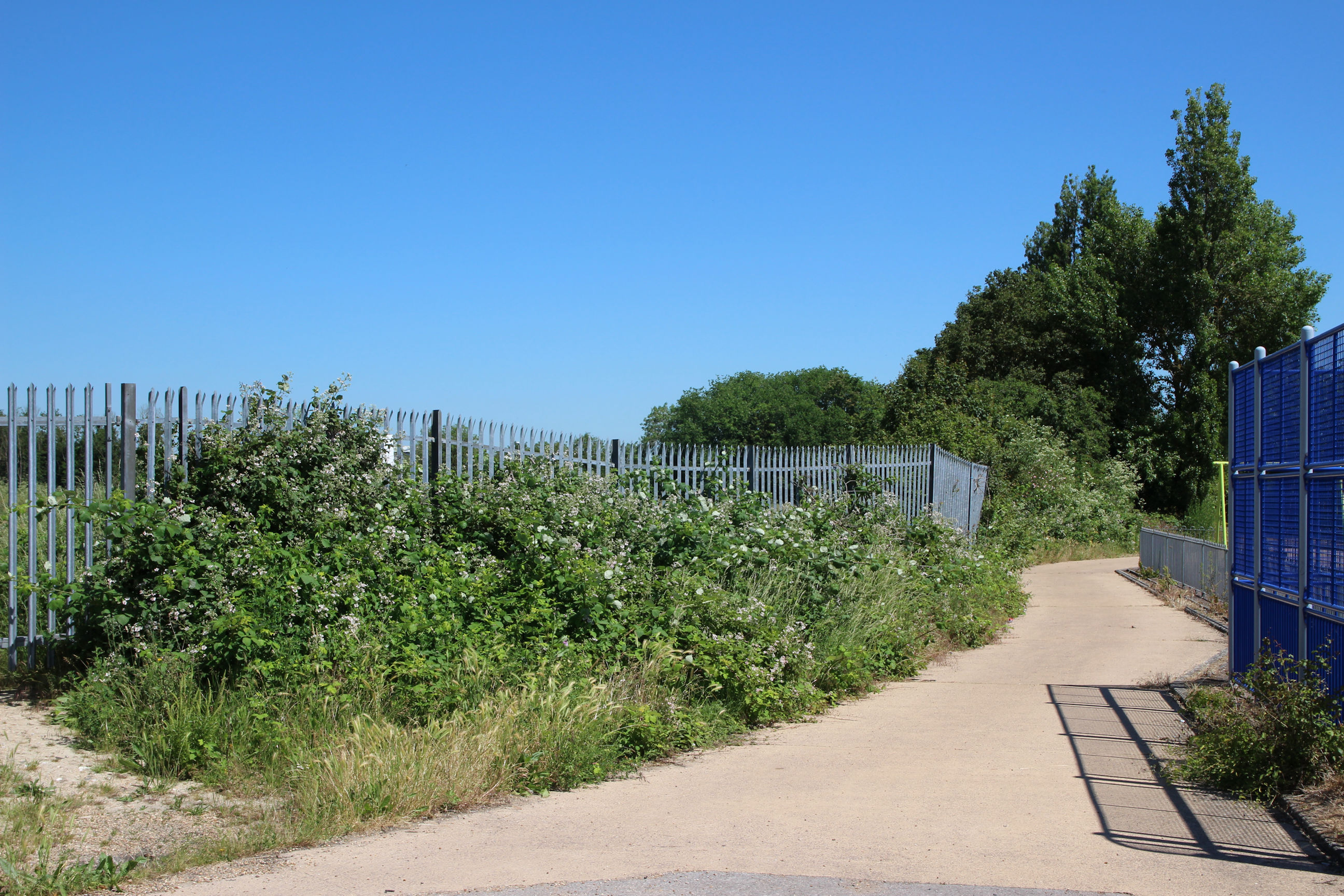This is the view across Parcel B towards the railway line. Between this entrance and the one further on in the Hanson site, only a few glimpses of Parcel B can be seen through the vegetation while walking along Coldham’s Lane.
