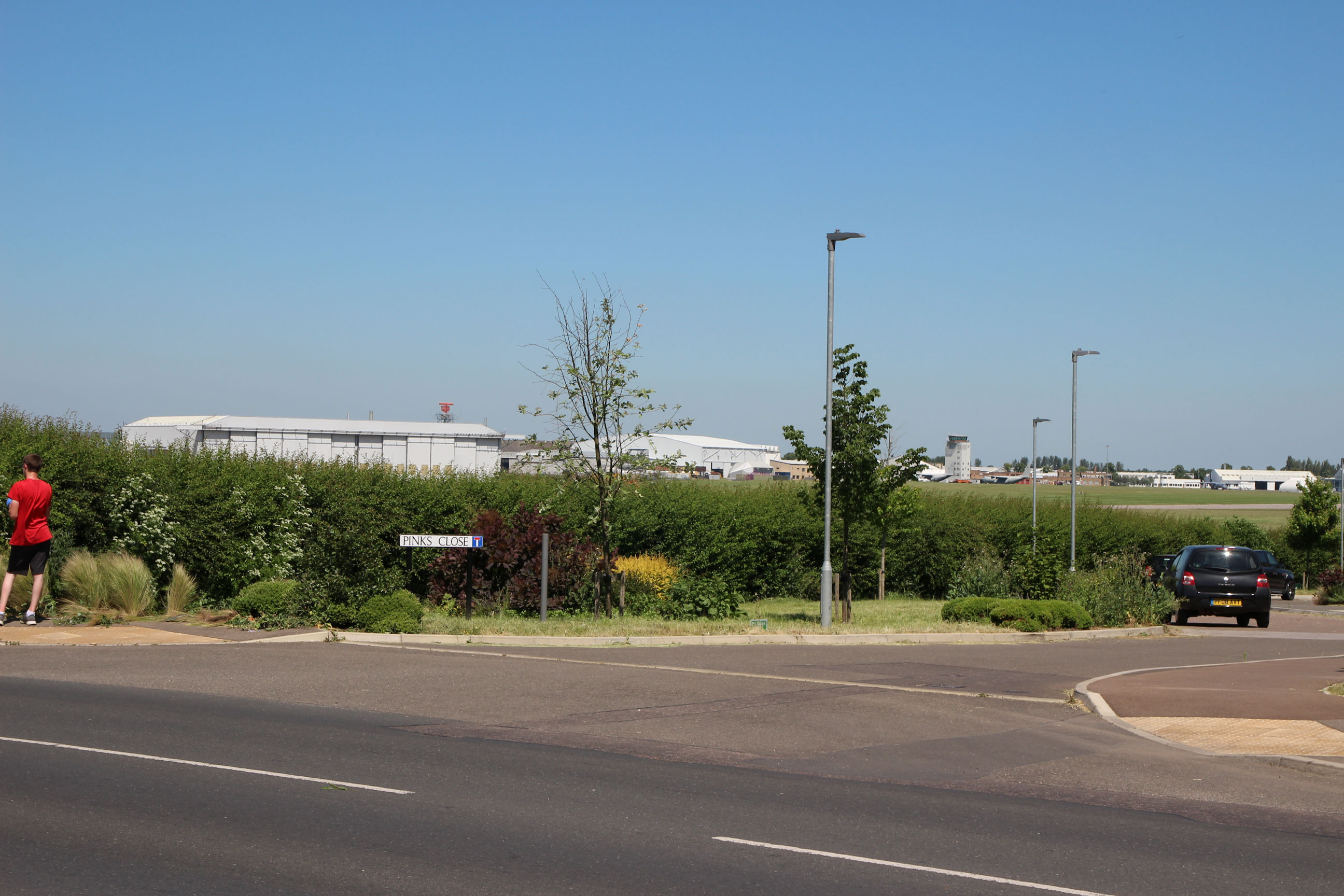 Looking across to the airport from here, the runway runs right-to-left and part of it can be seen at the far right of this photo.